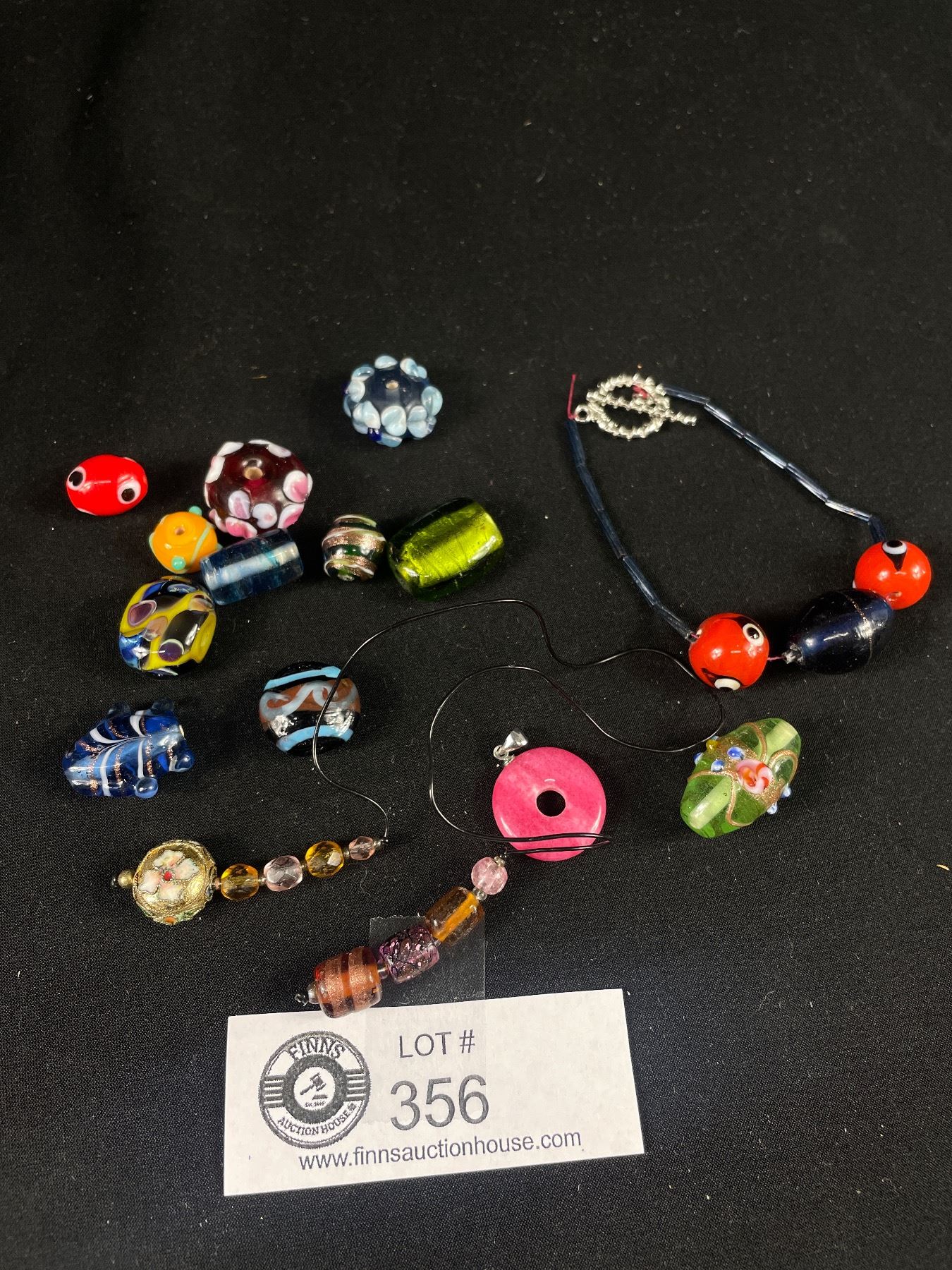 11 Ornate Glass Beads,Toggle Bracelet, Strand of Beads and Disk Pendant