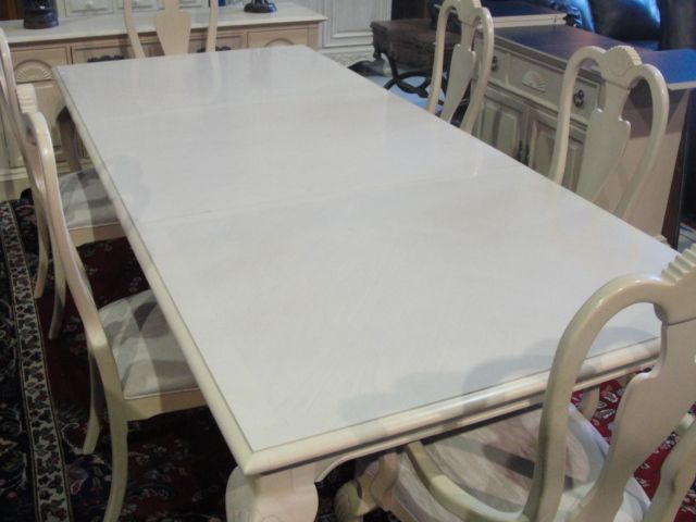 11 PIECE BLEACHED OAK DINNING ROOM SUITE, INCLUDES TABLE WITH 2 LEAVES, 6 CHAIRS, BUFFET AND