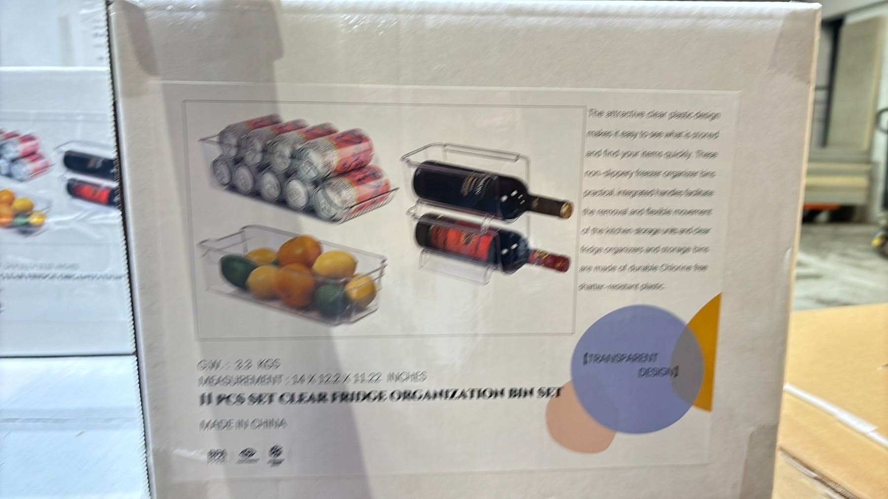 11 PIECE SET CLEAR FRIDGE ORGANIZATION BIN SET *IN BOX*