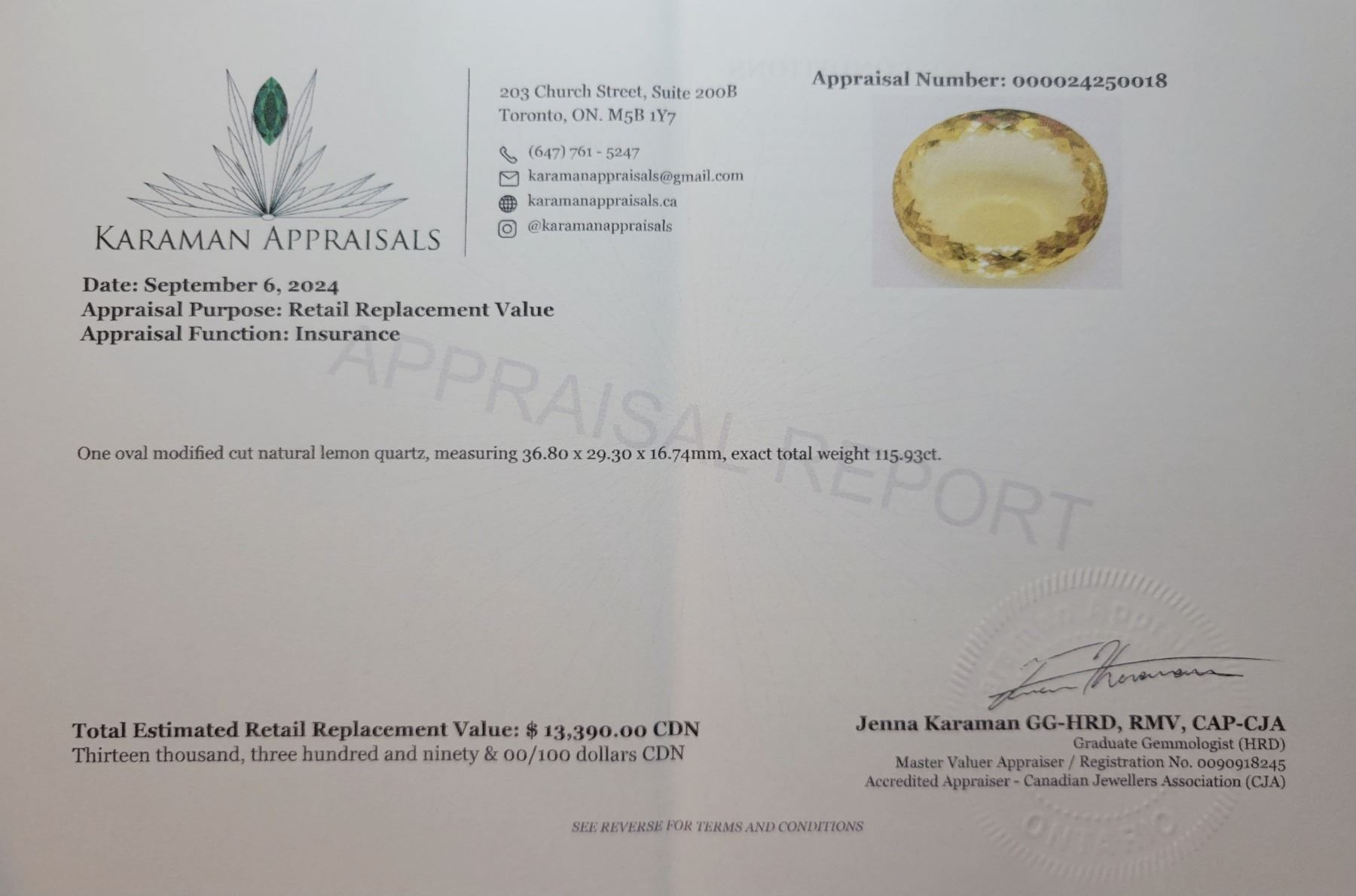 115.93 CT CERTIFIED VIVID LEMON QUARTZ GEMSTONE ($13,390 APPRAISAL, APPRAISAL NOT GUARANTEED)
