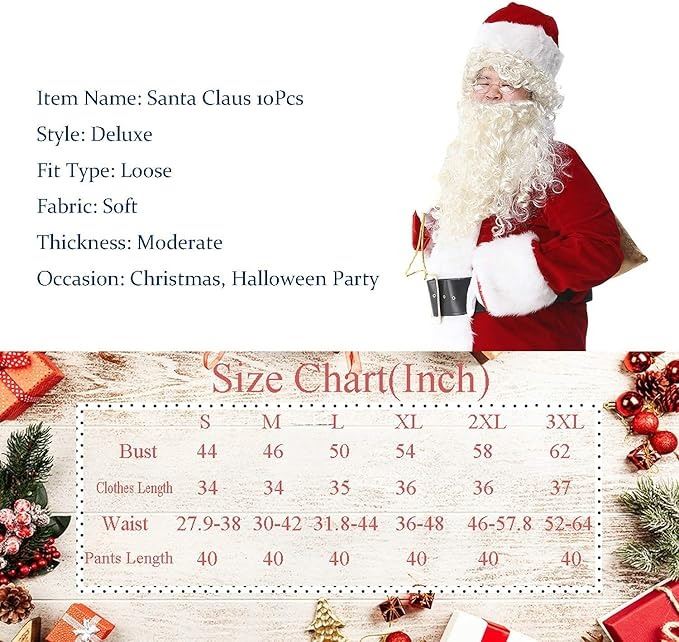 - Perfect Classic Santa Suit just in time for upcoming Christmas season! (Great for family photos)