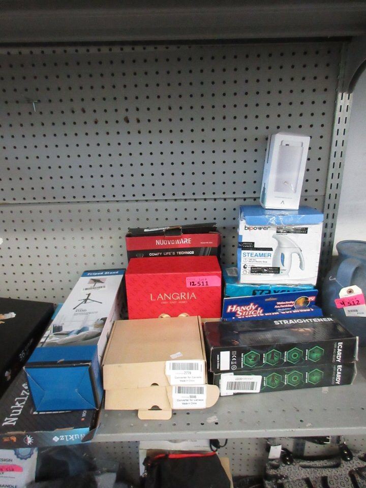 Small tripod stand, garment steamer, hair & beard straightener & more.