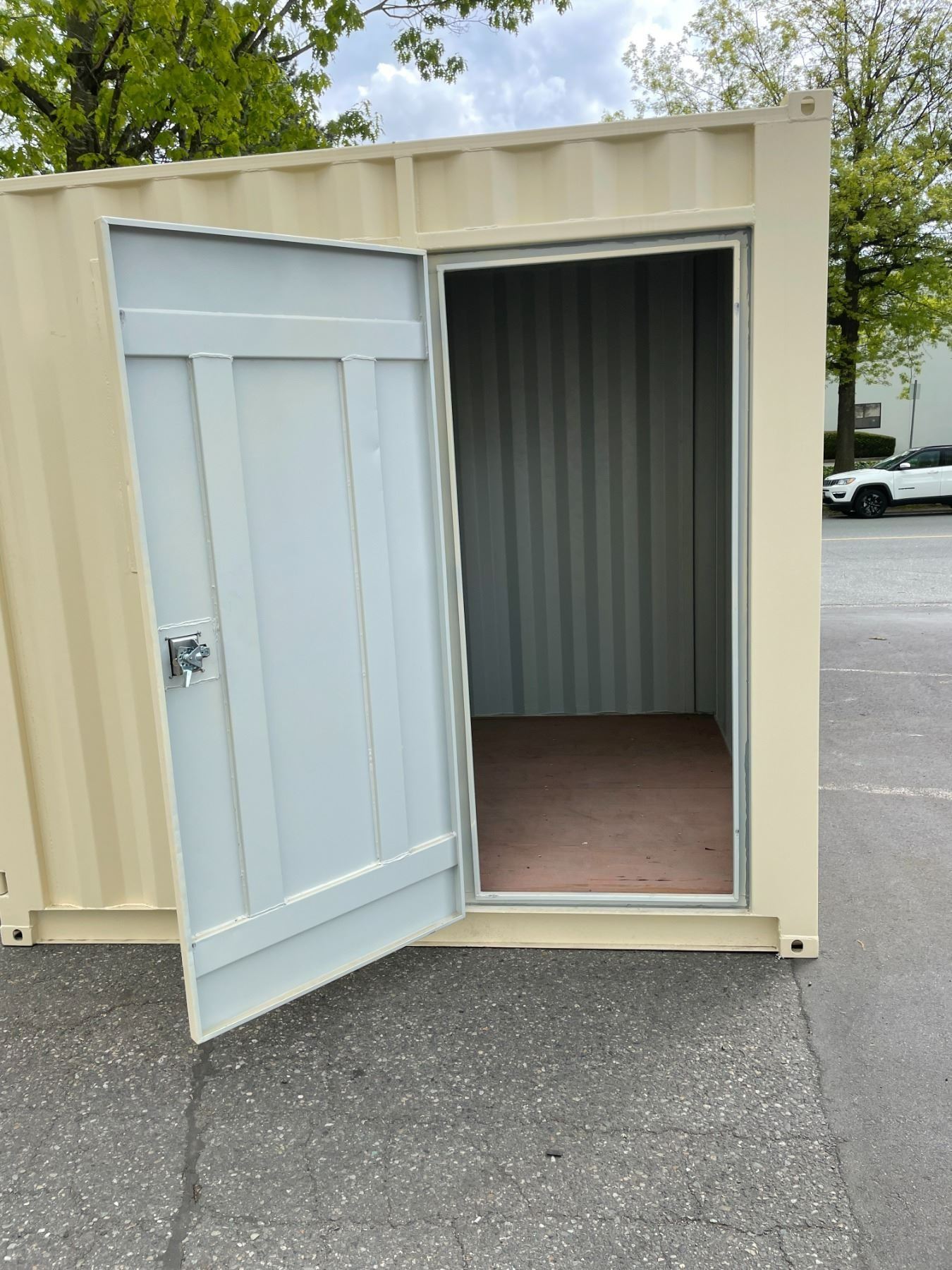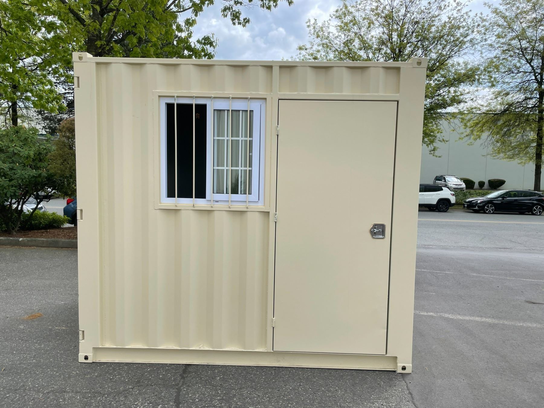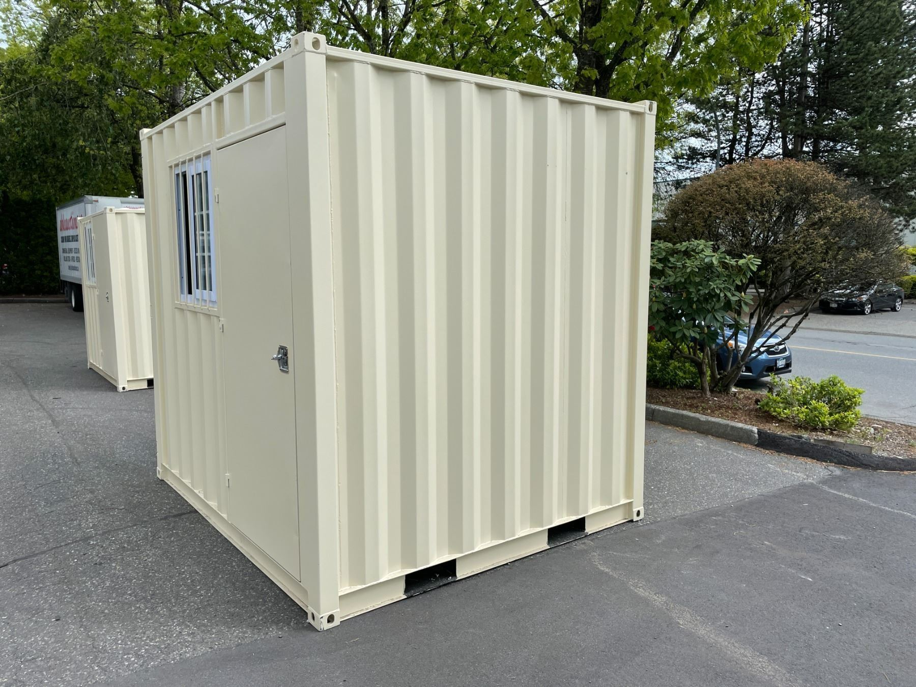 12' BEIGE PORTABLE OFFICE CONTAINER W88" X L144" X H99" WITH WINDOW, LOCKING MAN DOOR, WOOD FLOOR,