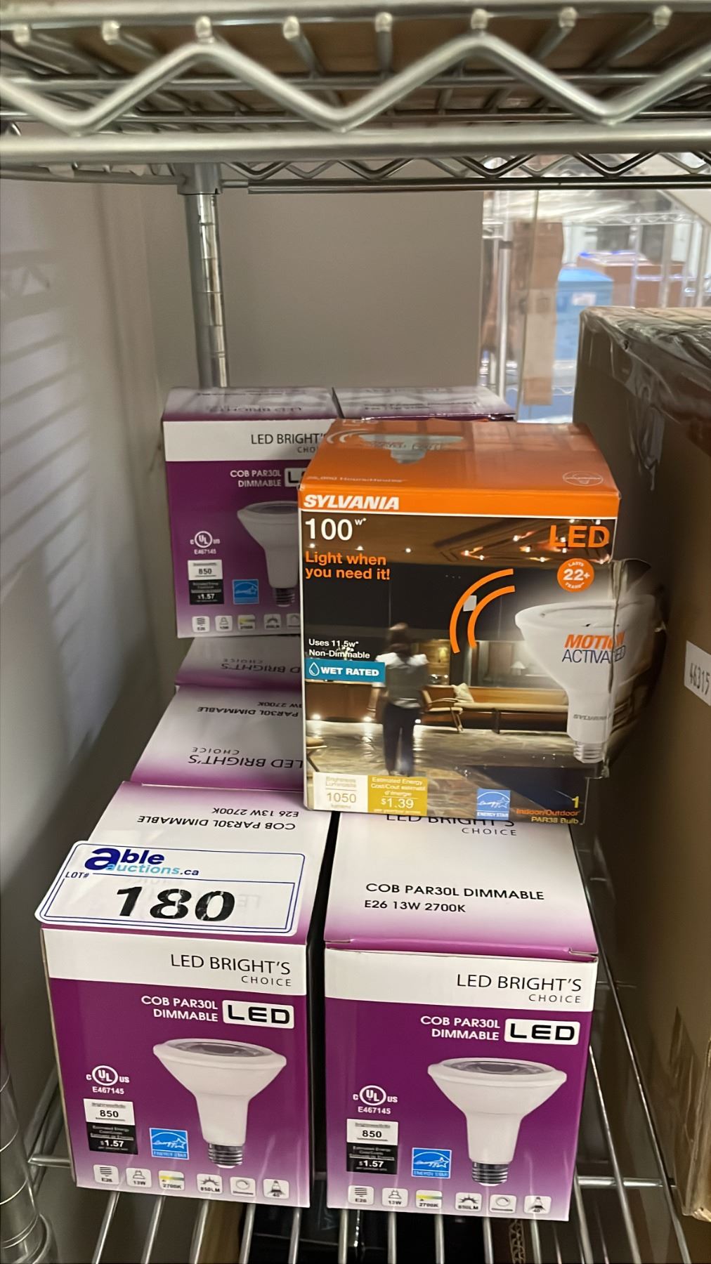 (12) LED BRIGHT'S CHOICE COB PAR30L DIMMABLE LED LIGHTS 2700K & (1) SYLVANIA 100W MOTION ACTIVATED
