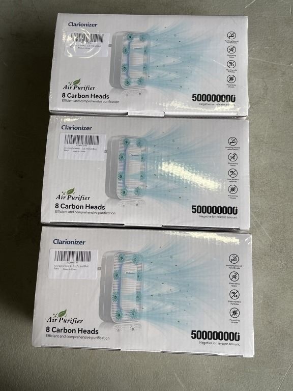12 NEW BLACK PLUG AIR PURIFIER IONIZERS, 8 CARBON HEADS, 3 NEW 4 PACKS, EACH PACK COVERS 450SQFT