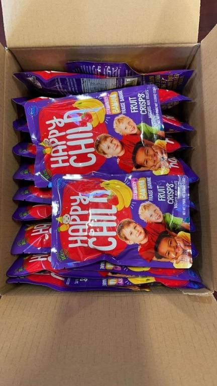 12 NEW CASES OF HAPPY CHILD FRUIT CRISPS - 4 CASES OF EACH FLAVOR APPLE, PEAR, STRAWBERRY BANANA, 24 PACKS PER CASE