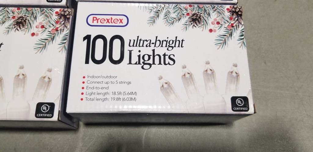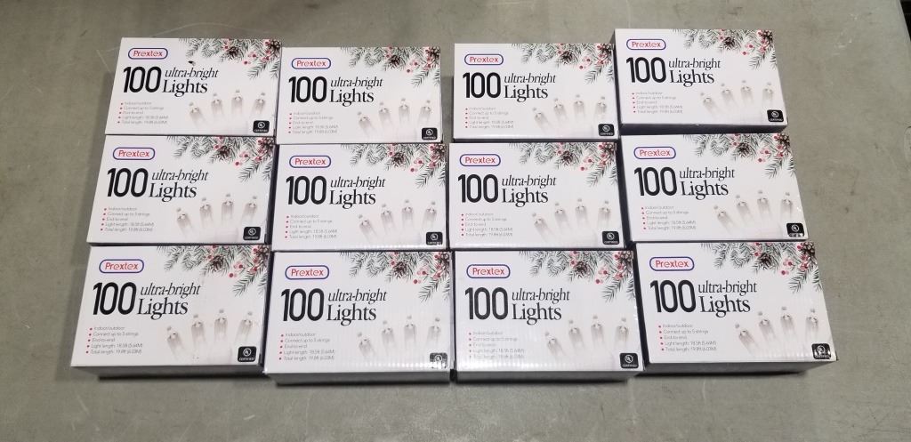 12 NEW PREXTEX XMAS LIGHTS, 100 ULTRA BRIGHT LIGHTS PER PACKAGE