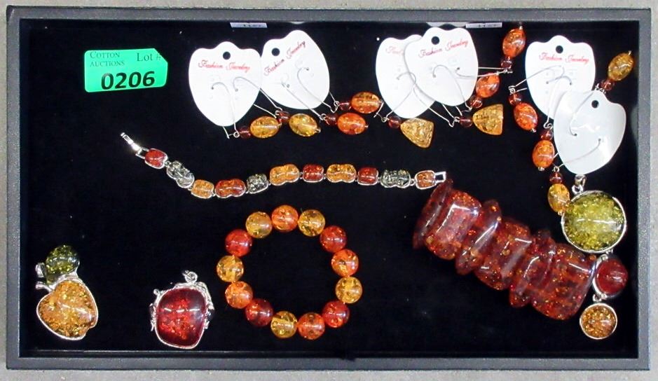 6 Pairs of drop earrings, 3 pendants, and 3 bracelets.