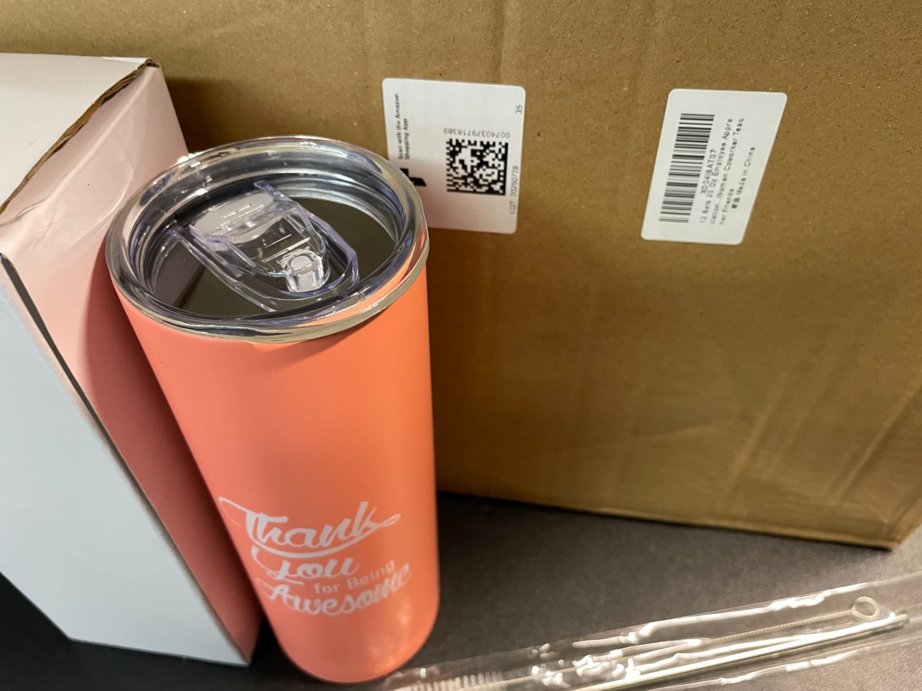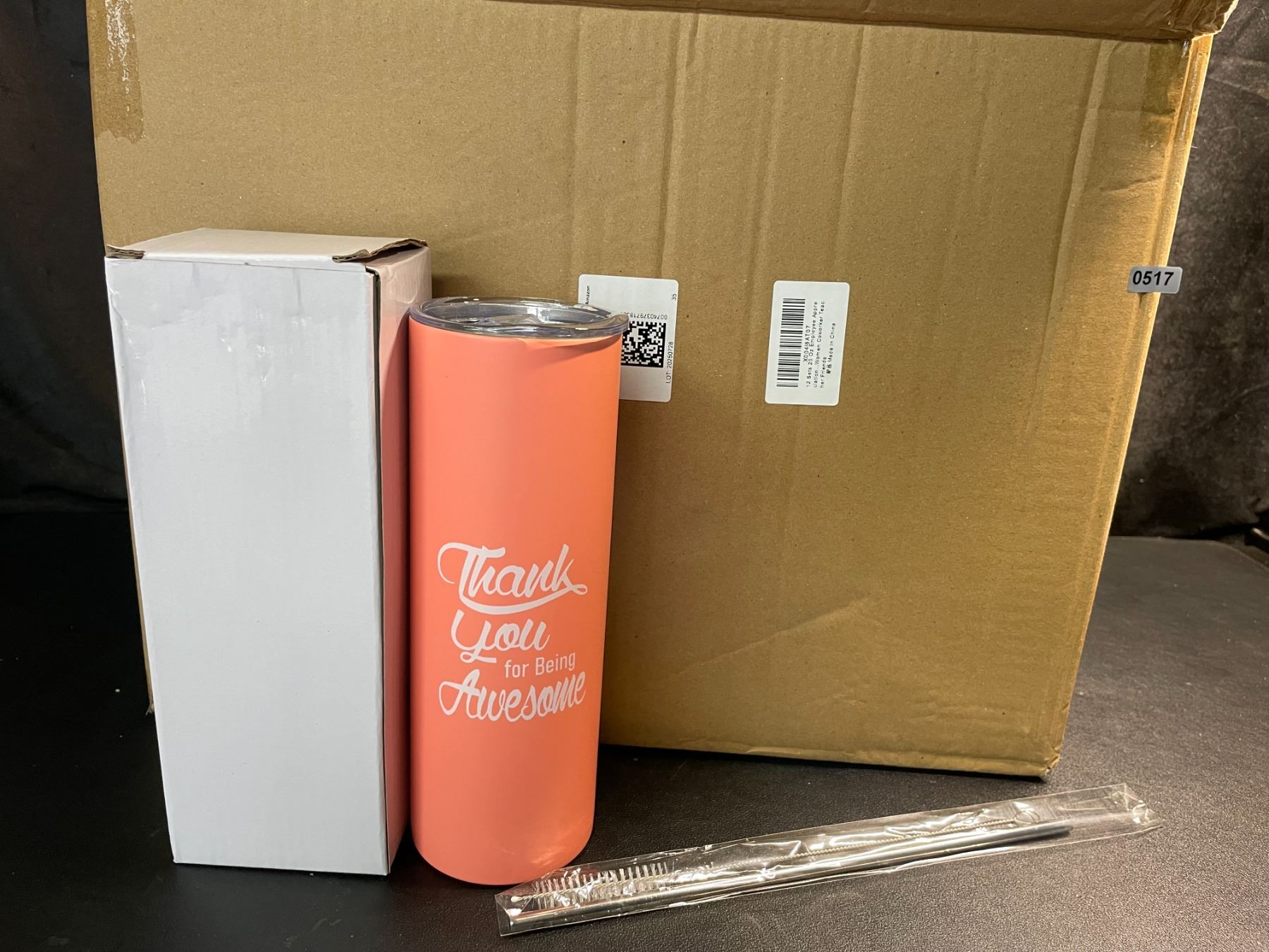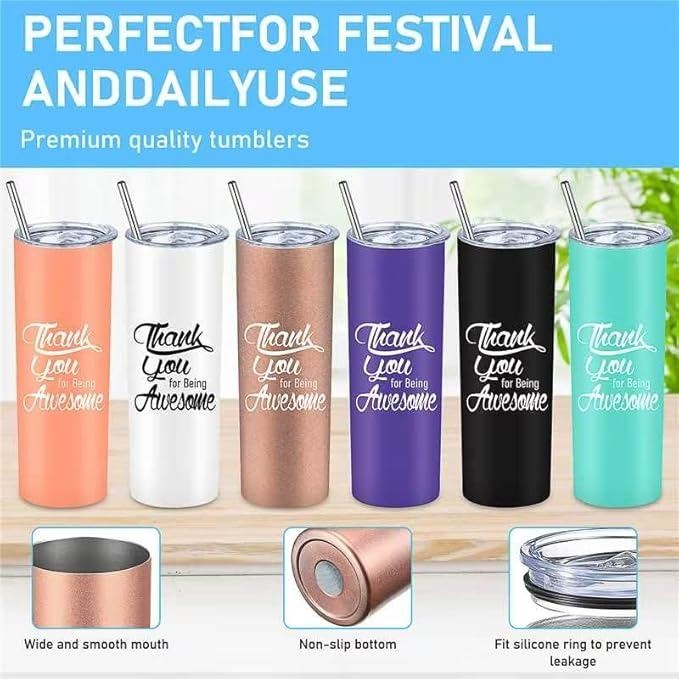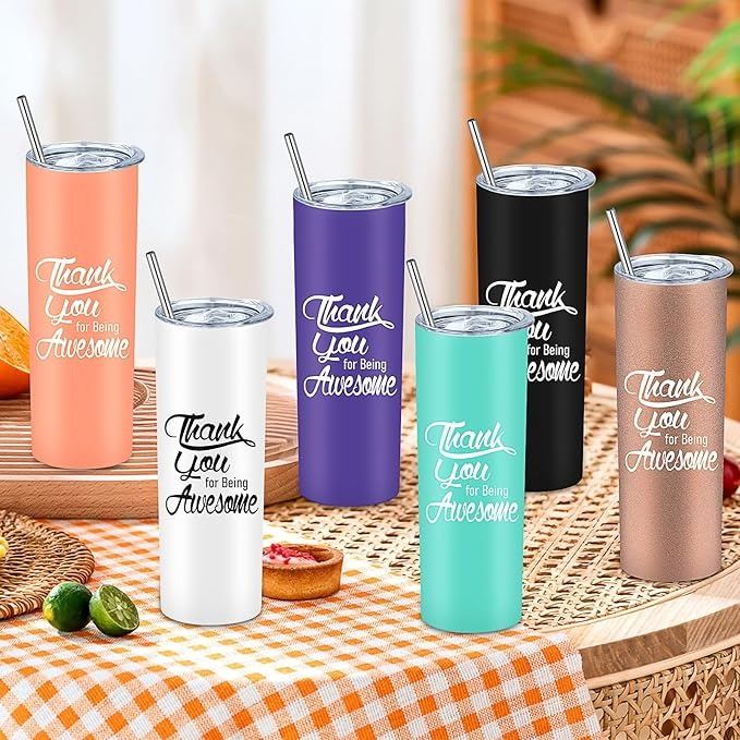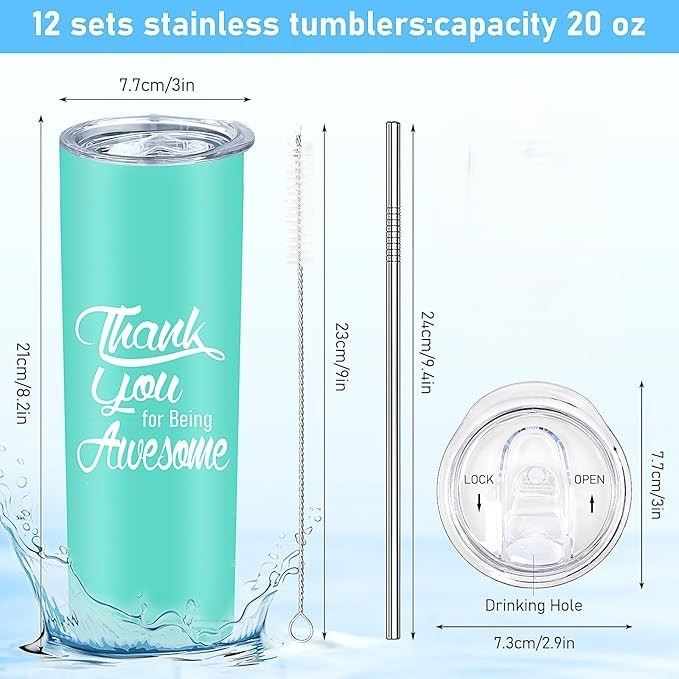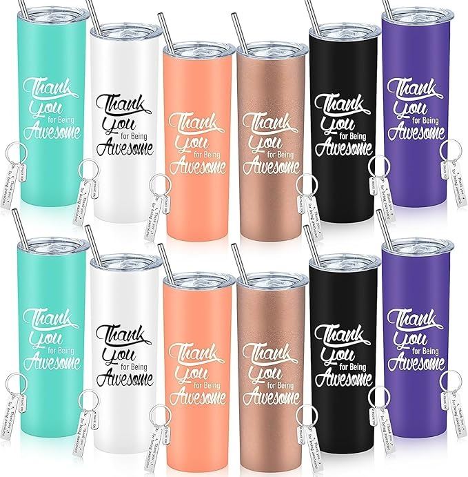 - 12 Sets 20 Oz Appreciation Gift Mugs/"Thank You for Being Awesome" Stainless Steel Insulated Skinny Tumbler Mugs with Lid and Straw; Inspirational Travel Mugs for Coworkers, Teachers, Friends, etc.