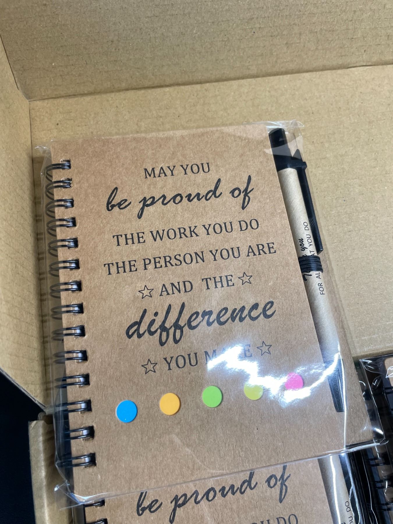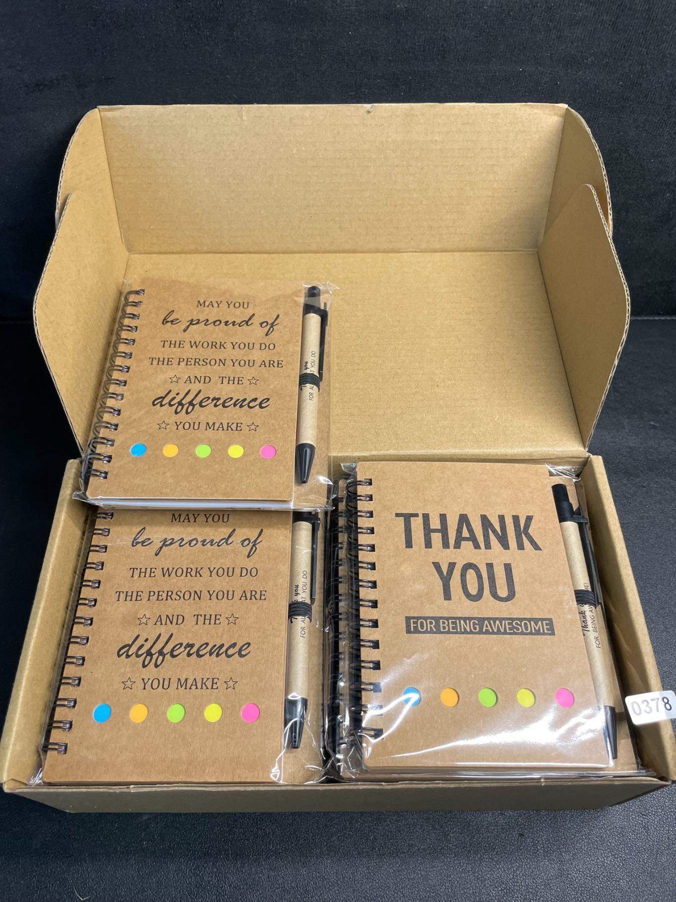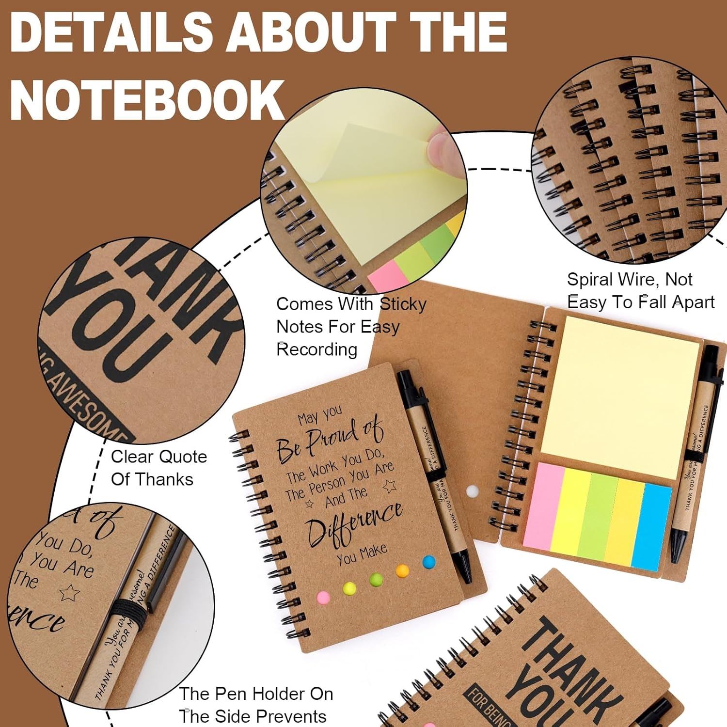 - Thank you gifts with notebooks and retractable ballpoint pens will make your gifts practical and thoughtful, and a white organza gift bag makes it easier for you to wrap your gifts more elegantly.