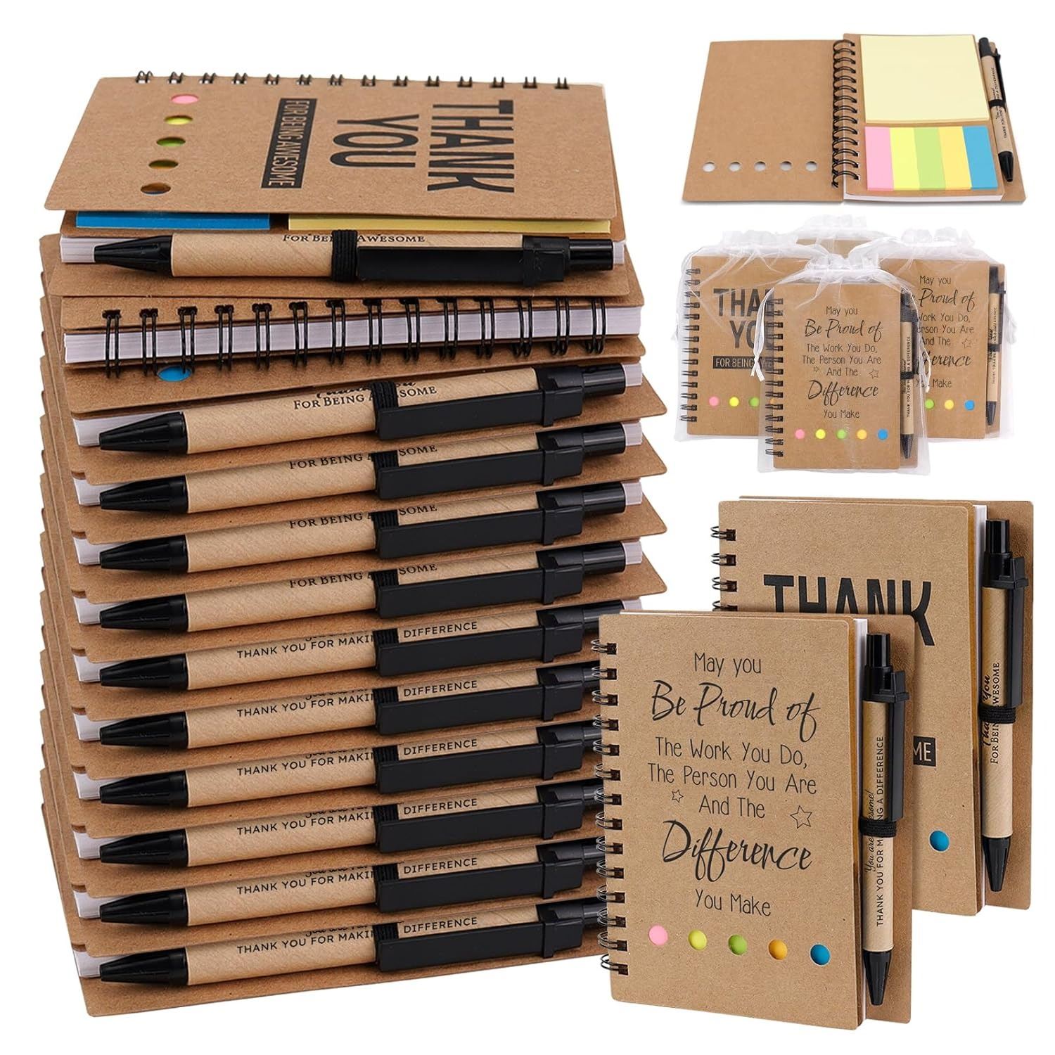 - Thank you gifts with notebooks and retractable ballpoint pens will make your gifts practical and thoughtful, and a white organza gift bag makes it easier for you to wrap your gifts more elegantly.
