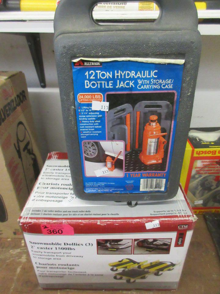 12 Ton Bottle Jack & 3 Pc. Set Snowmobile Dollies