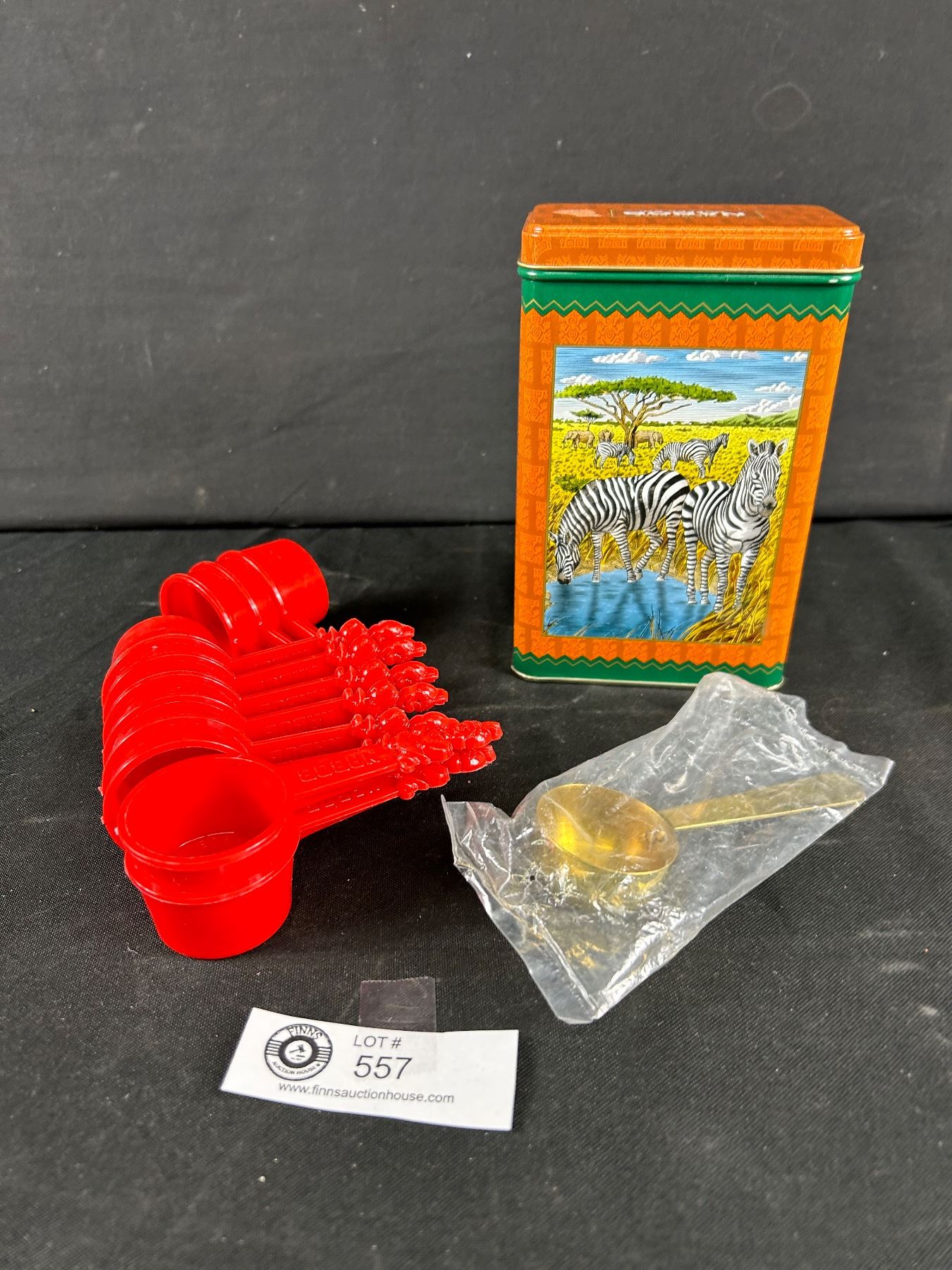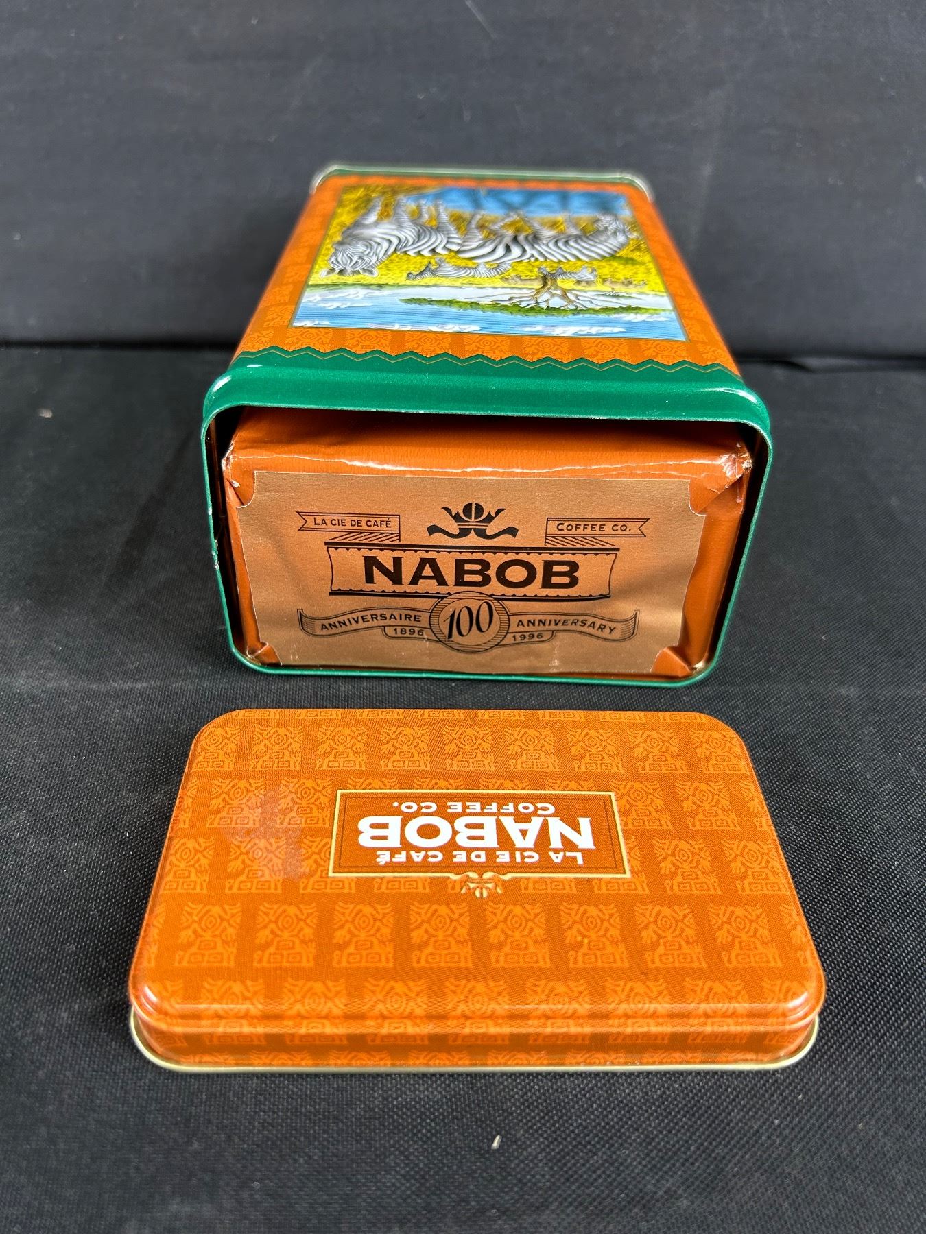 12 Vintage Nabob Coffee Measurers, 1 Is Metal & Nabob African Safari Blend Coffee Tin w/ Pkg Of Coffee