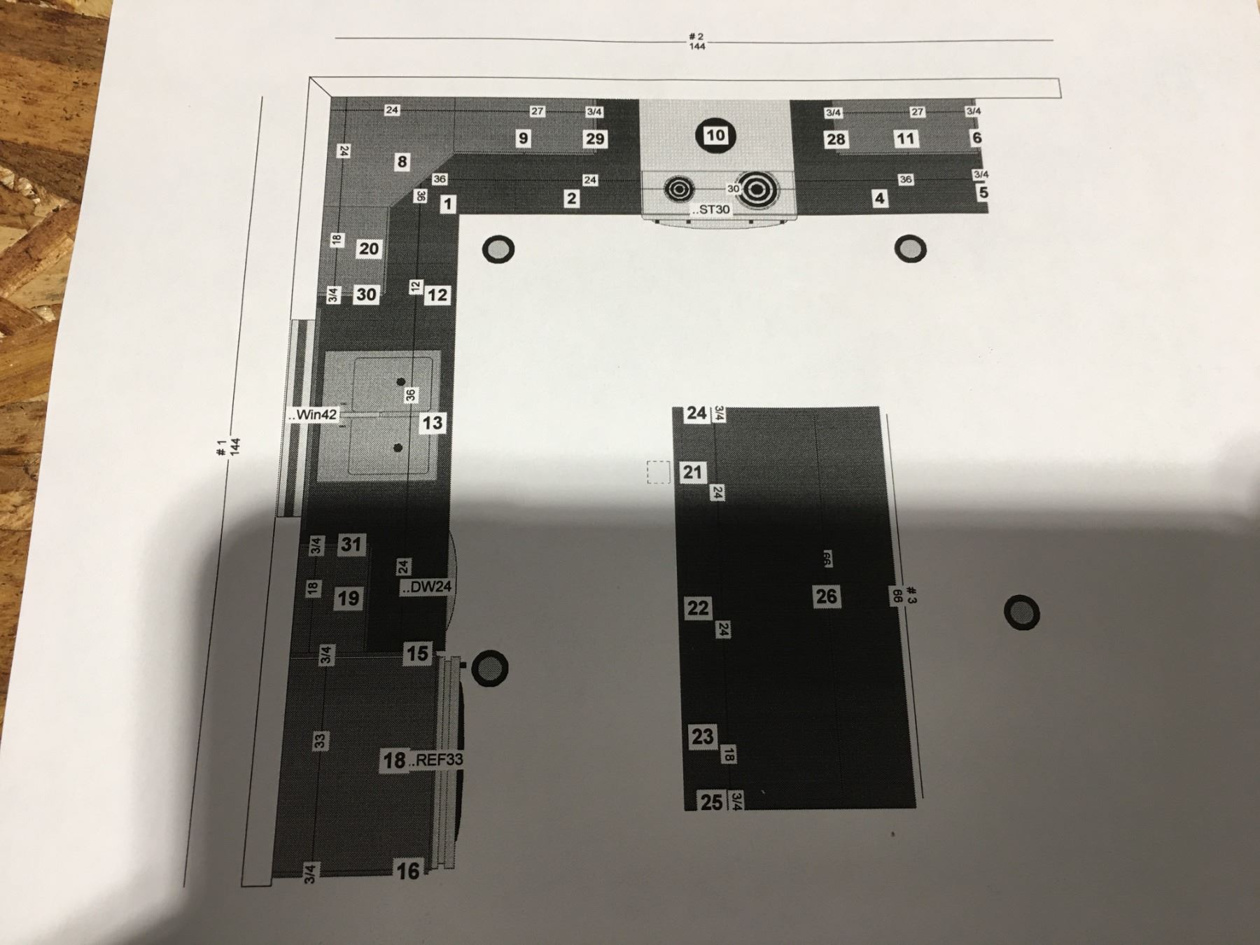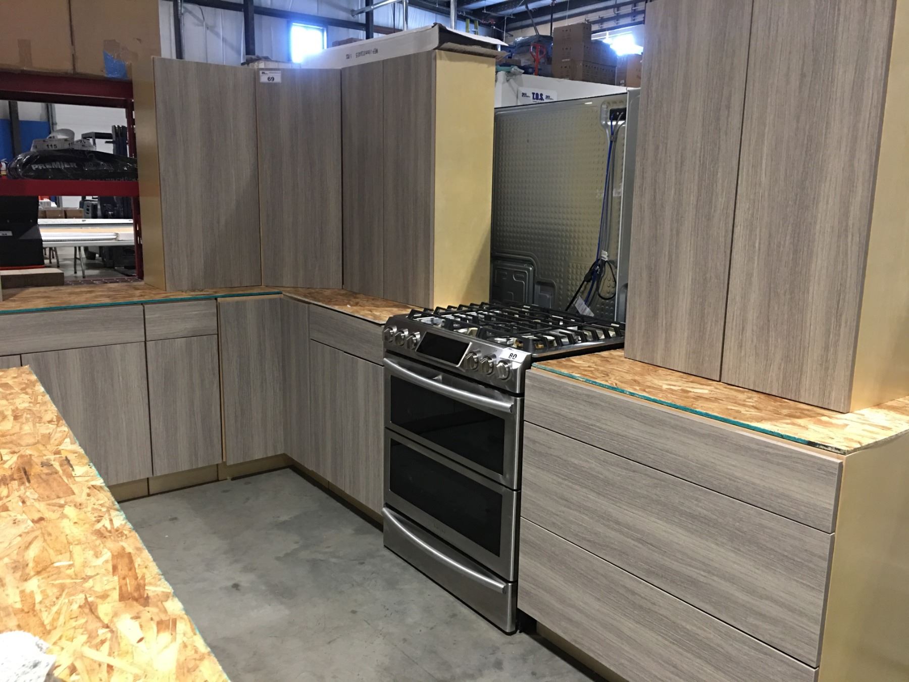 12' X 12' KITCHEN CABINET SET WITH SILVER OAK FINISH 40" H UPPER CABINETS/MAPLE HARDWOOD DRAWERS WITH DOVETAIL JOINS/SOFT RETURN CLOSURE/6' L ISLAND/FINISHING PANELS & TRIM