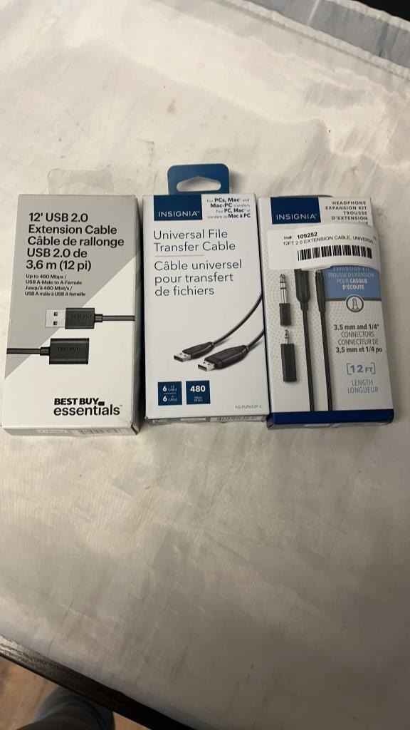 12FT 2.0 EXTENSION CABLE, UNIVERSAL FILE TRANFER CABLE, AND HEADPHONE EXPANSION KIT
