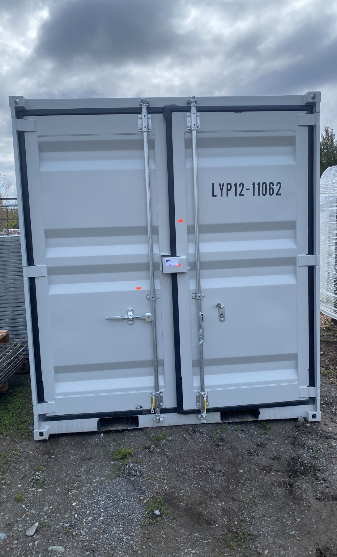 12FT GREY OFFICE STORAGE SHIPPING CONTAINER 144"L X 87.5"W X 99"H WITH DUAL SWING REAR DOORS WITH CAMS, SIDE MAN DOOR & WINDOW 142"X86'X94"