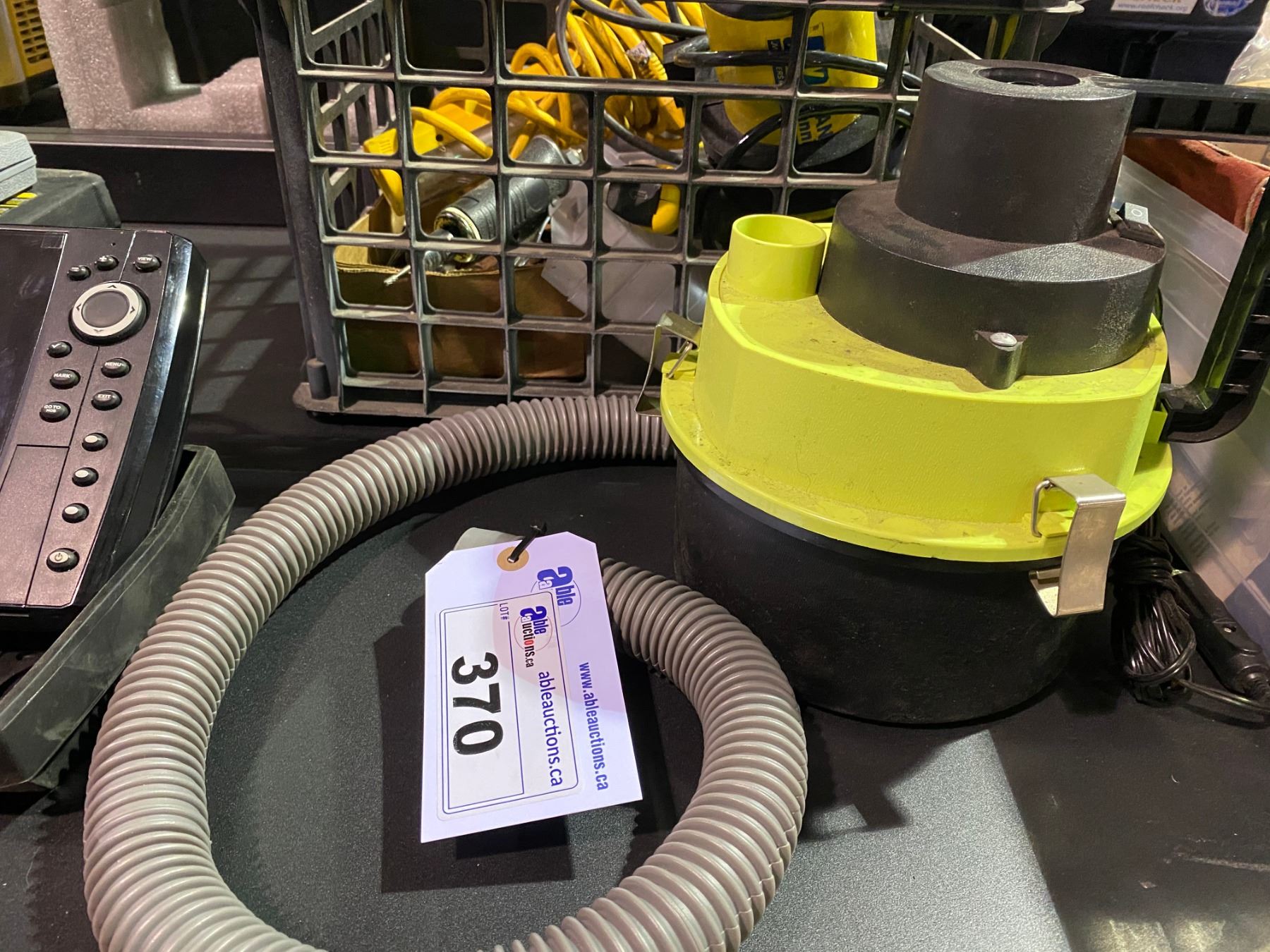 12V CAR VACUUM & CRATE WITH SONAR SCANNER & LIGHT AND ASSORTED TOOLS