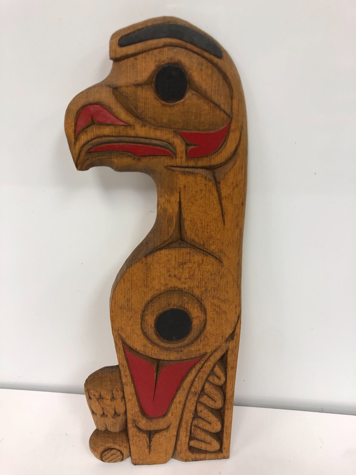 12in West Coast First Nations "Eagle" carved wooden plaque signed Roger Swakum 1995