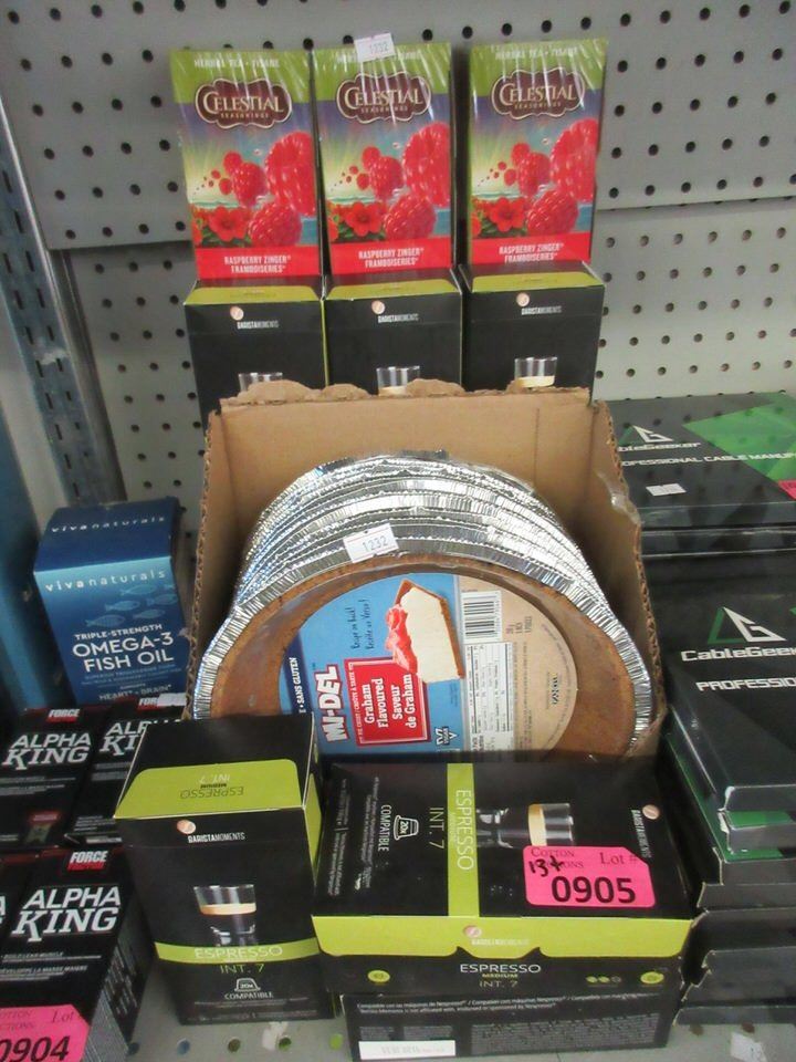 Raspberry Zinger Tea, Espresso Capsules, and Graham Flavoured Pie Shells.