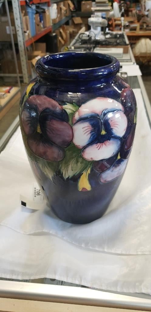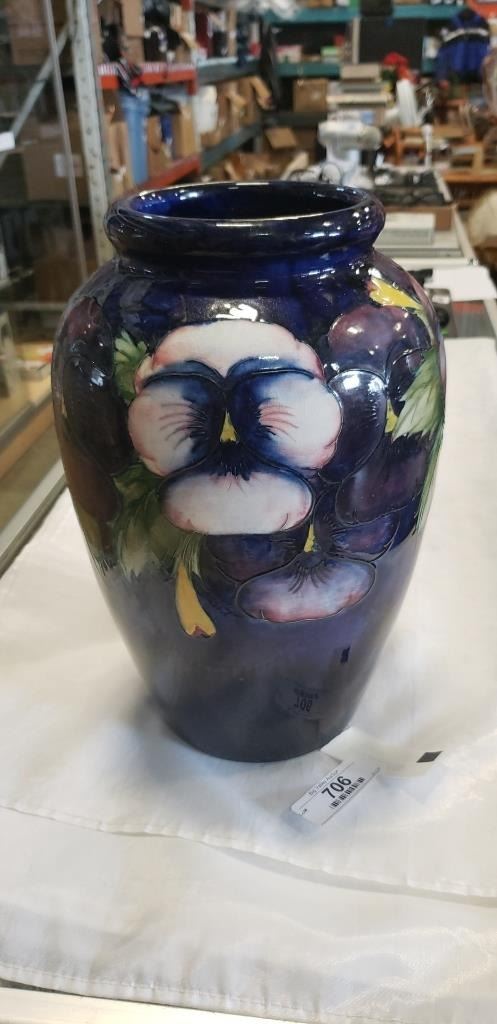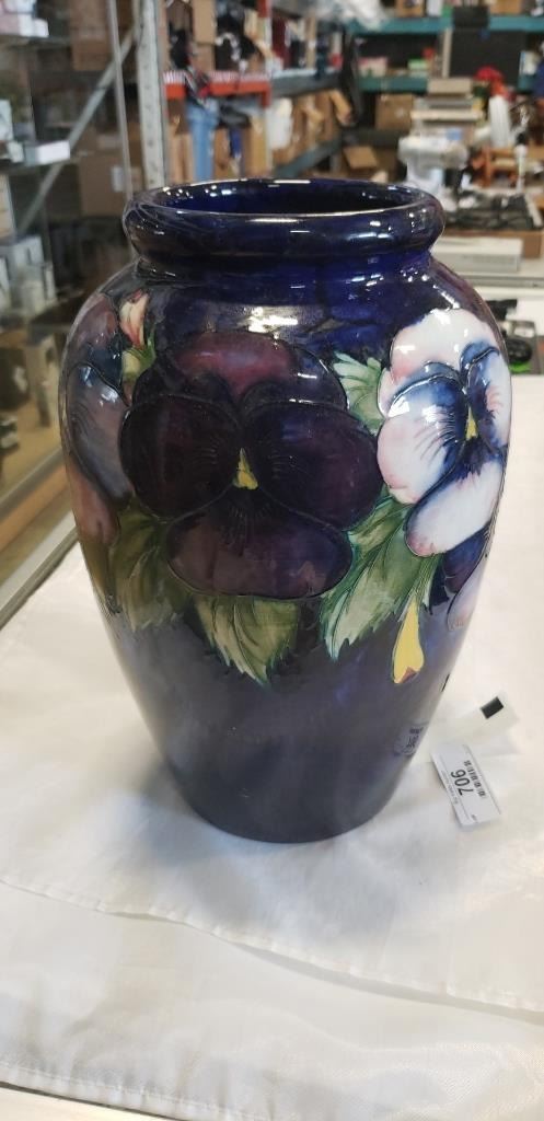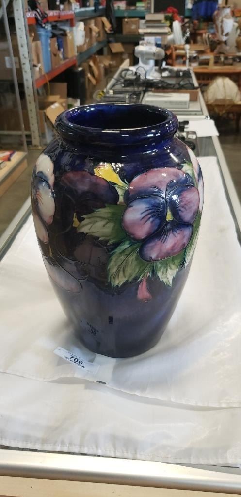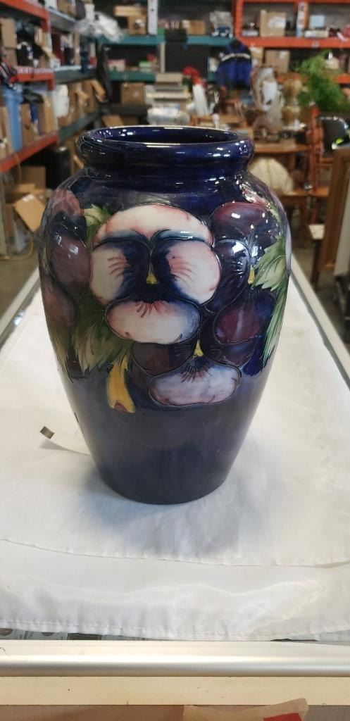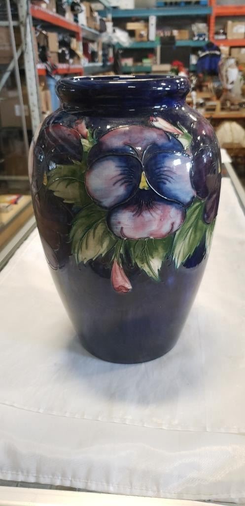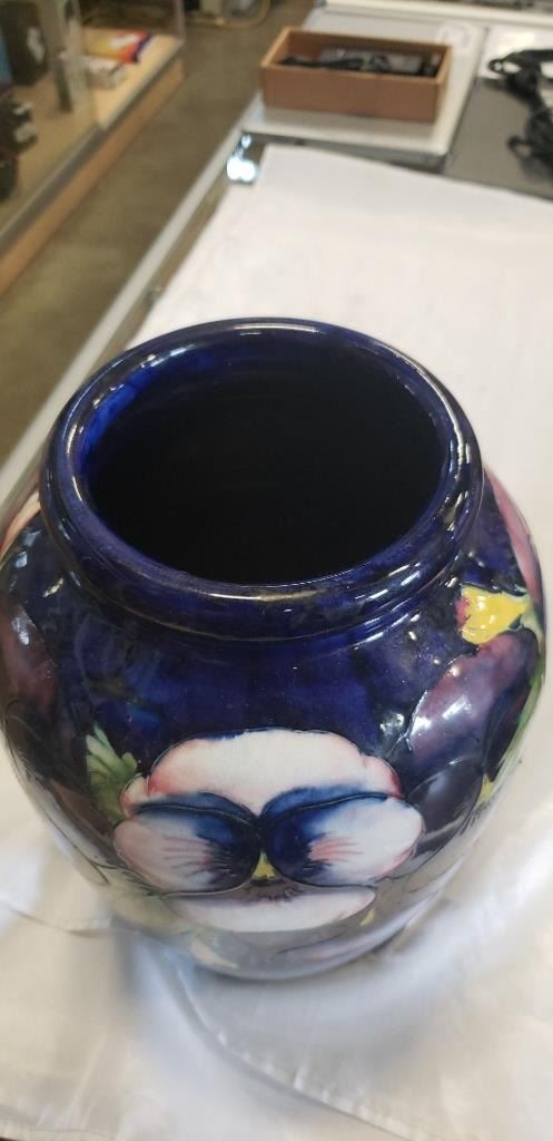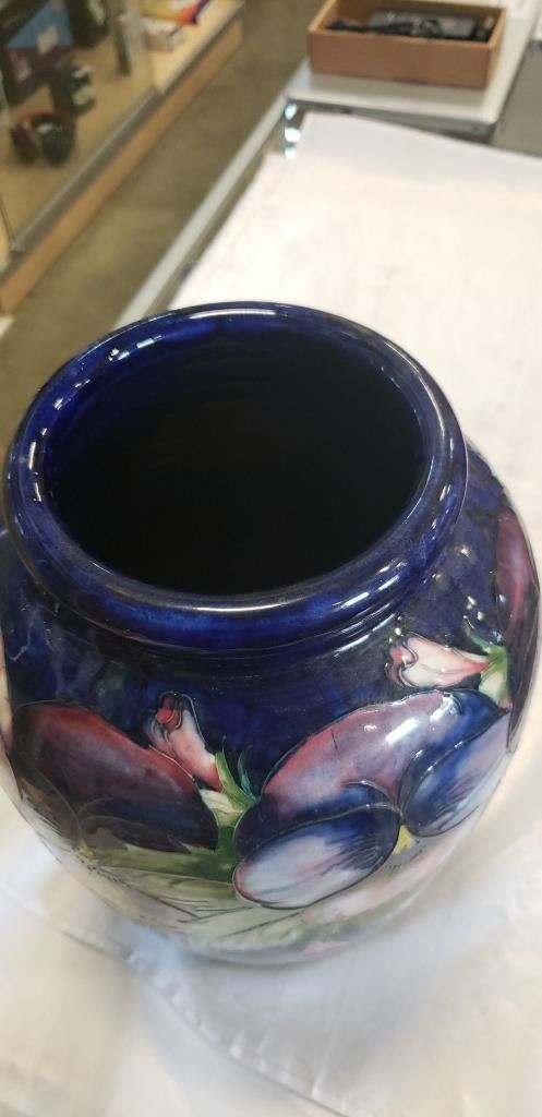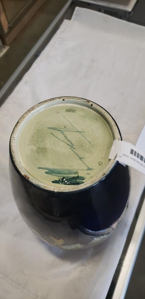 13 INCH TALL SIGNED MOORCROFT VASE - APPROX 9 INCH DIAMETER