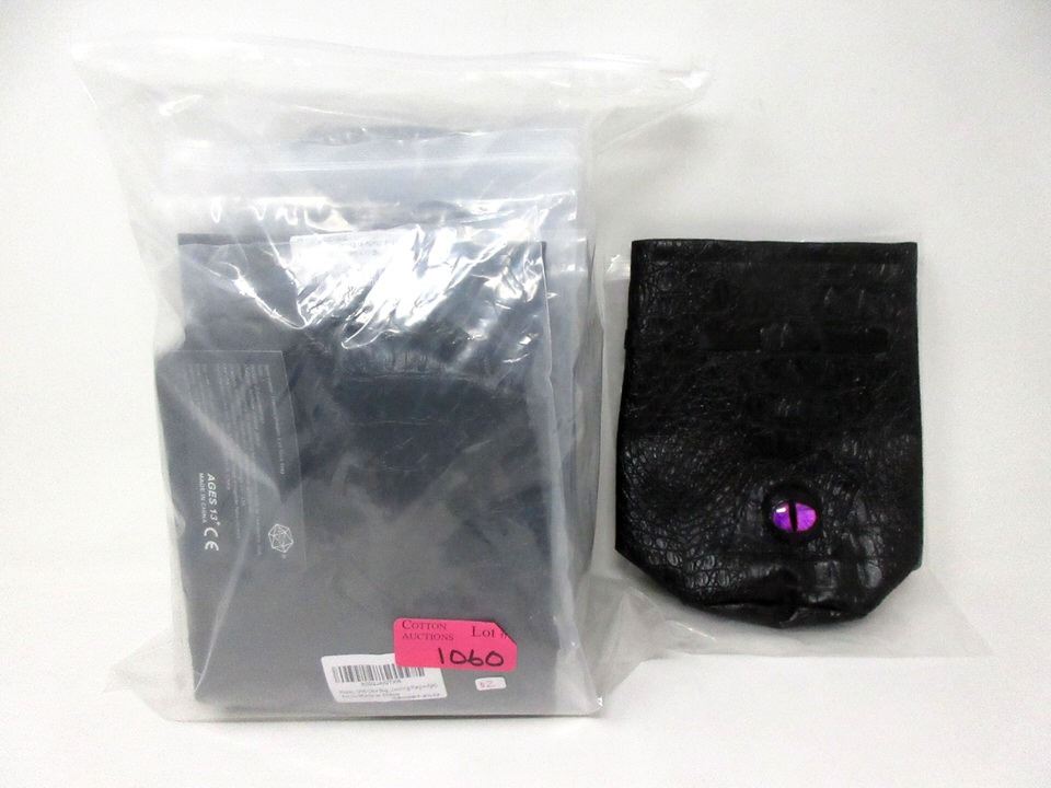 Purple eye. Bags are 5" diameter and 5" tall at the pull string. Holds 3-6 Seven Piece Dice Sets.