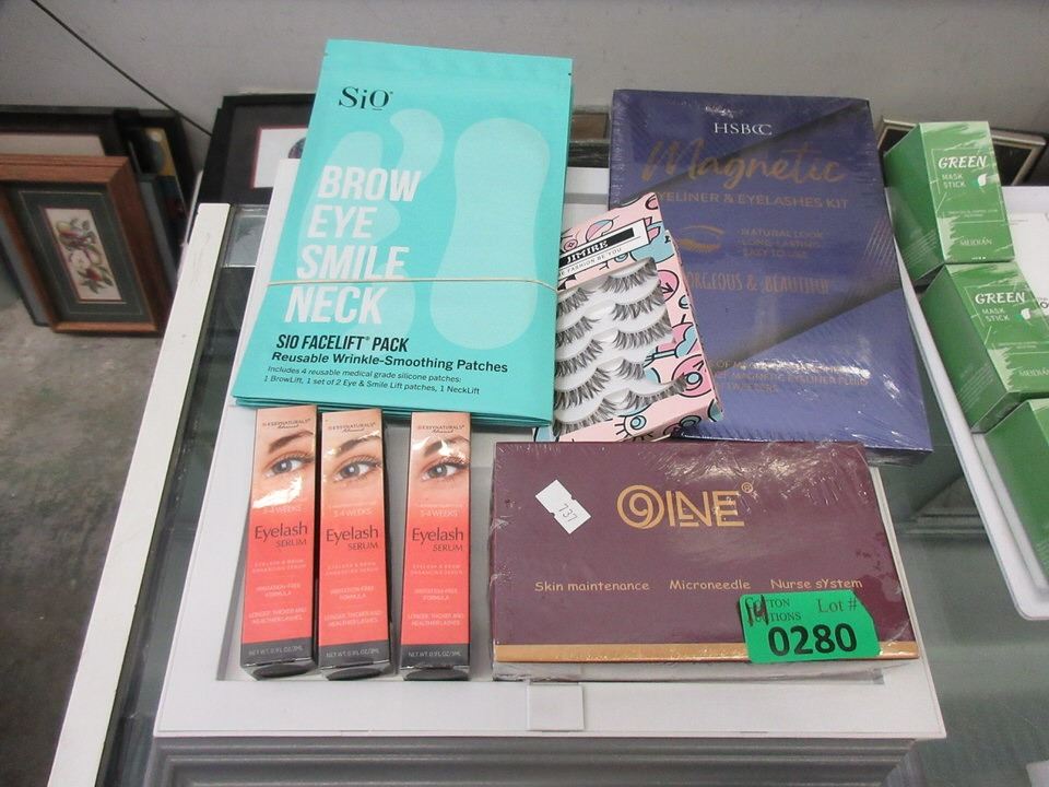 3 Eyelash serum, 7 silicone face lift packs, 1 false eyelashes, and 1 magnetic eyelash kit.