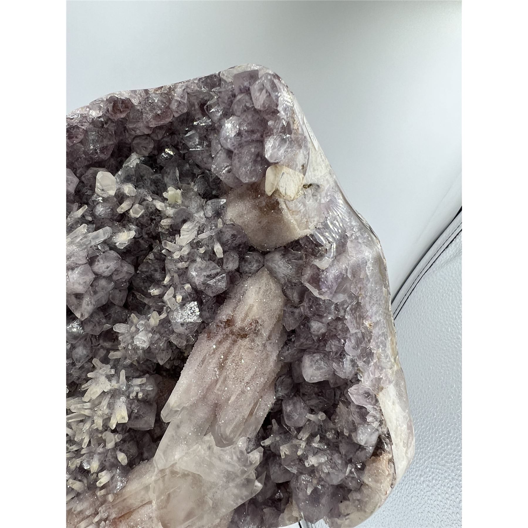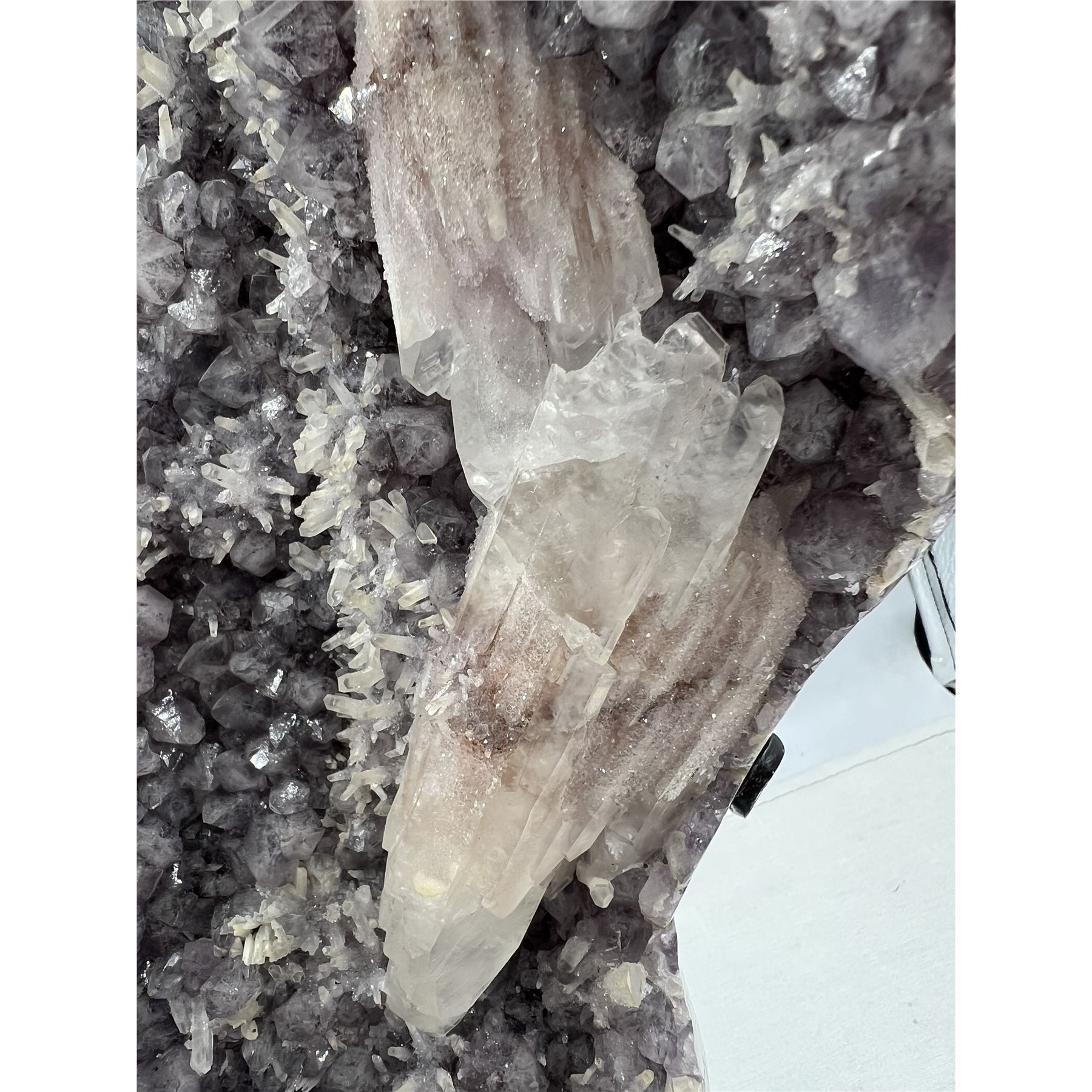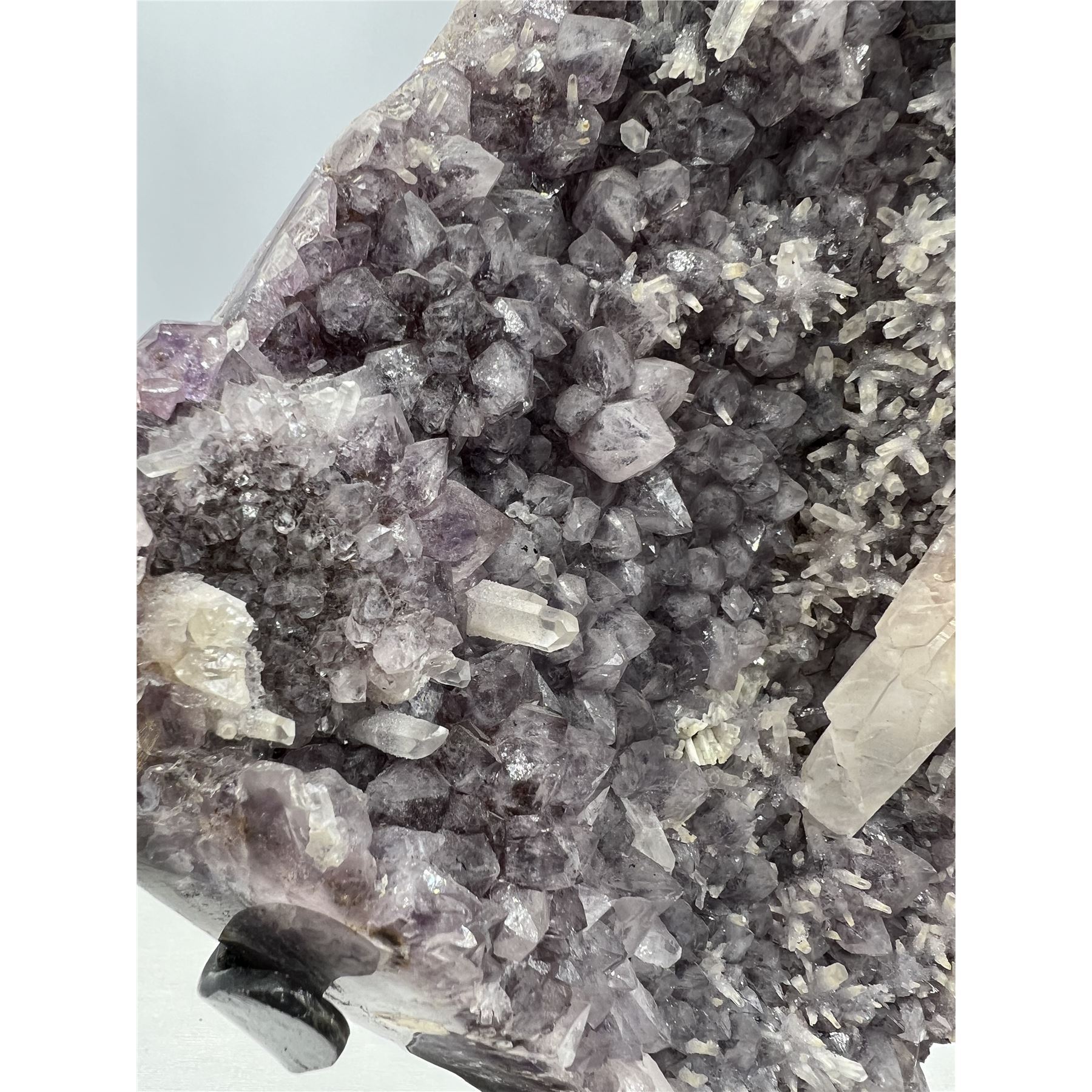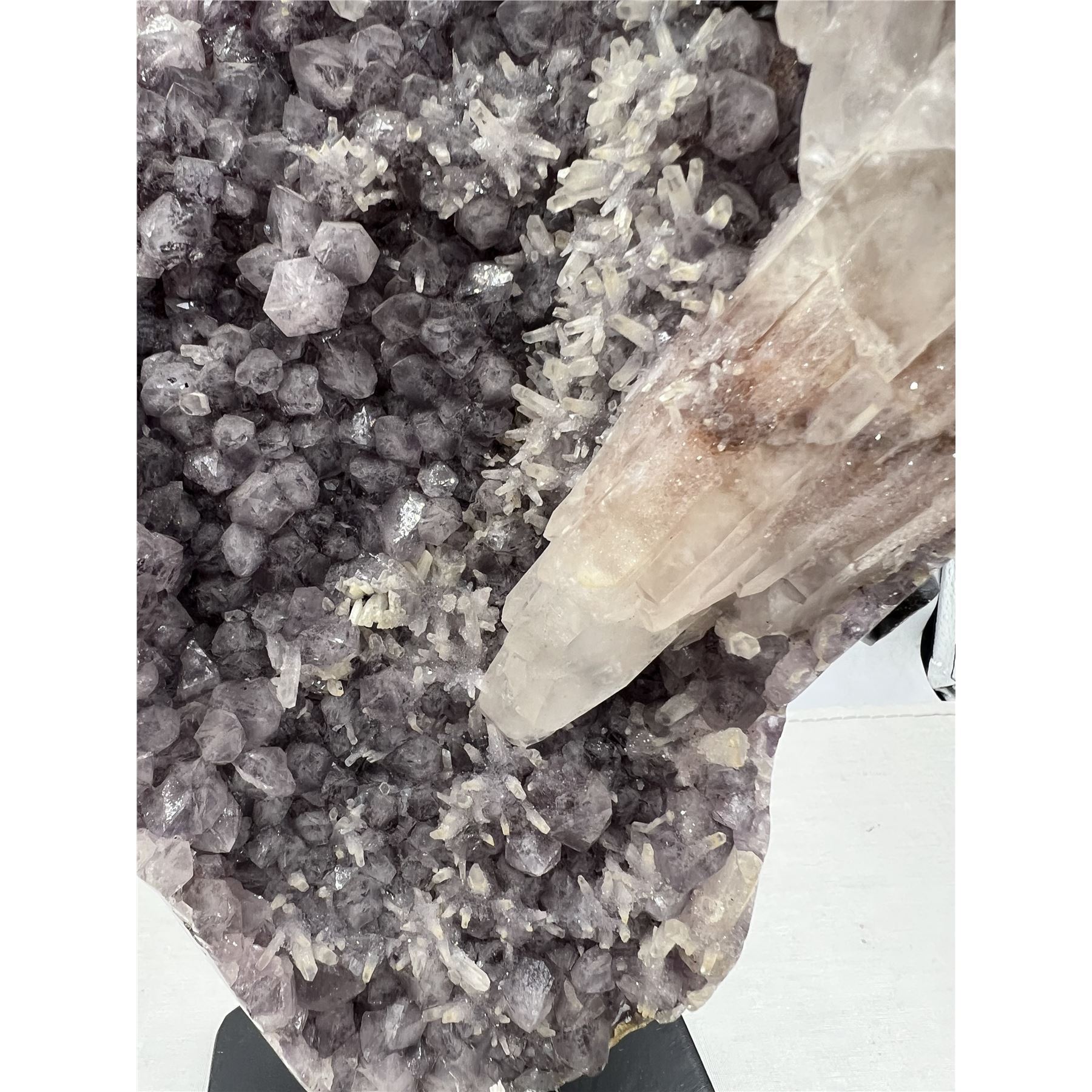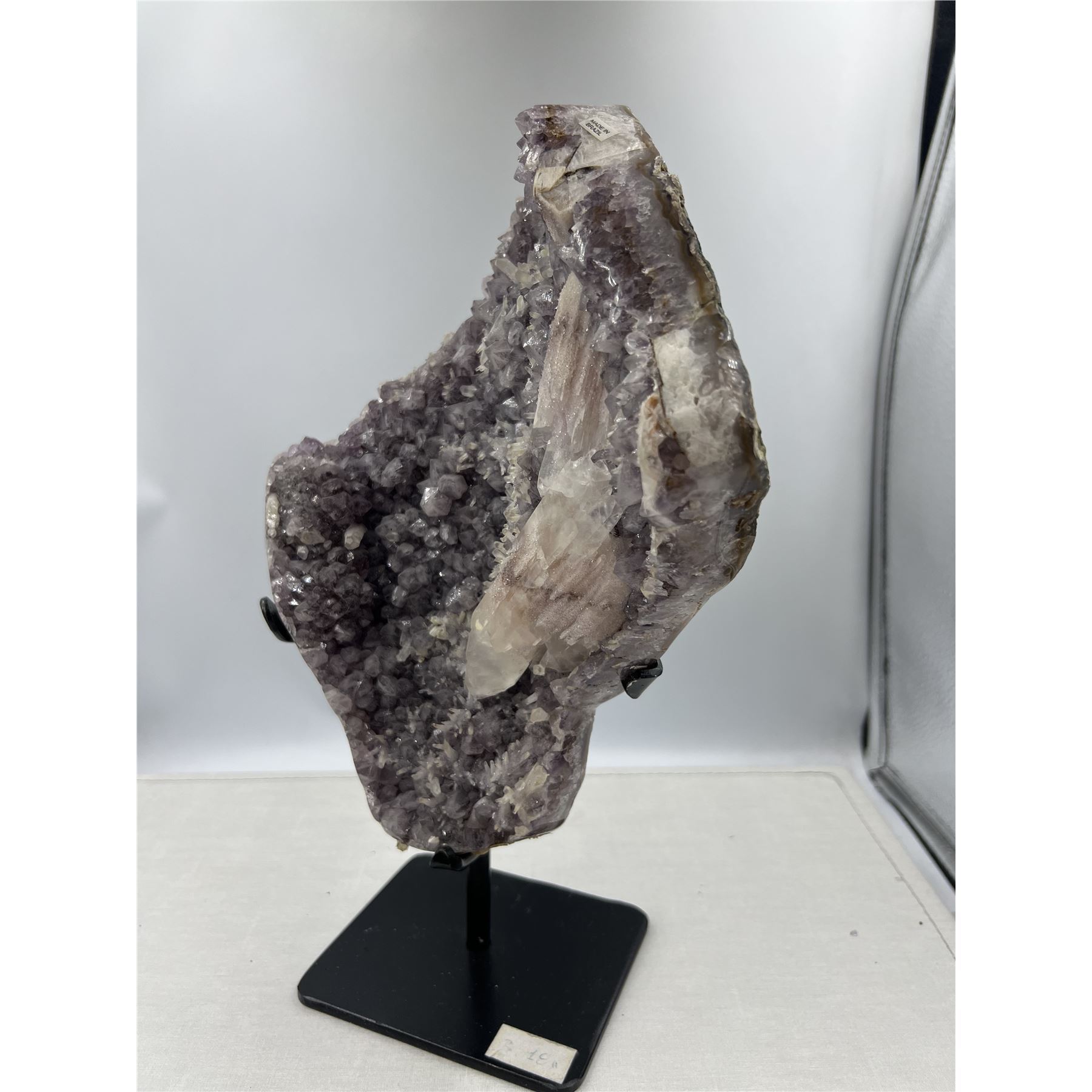 13 X 9 INCH AMETHYST WITH SUGAR COATED CALCITE ON STAND FROM BRAZIL