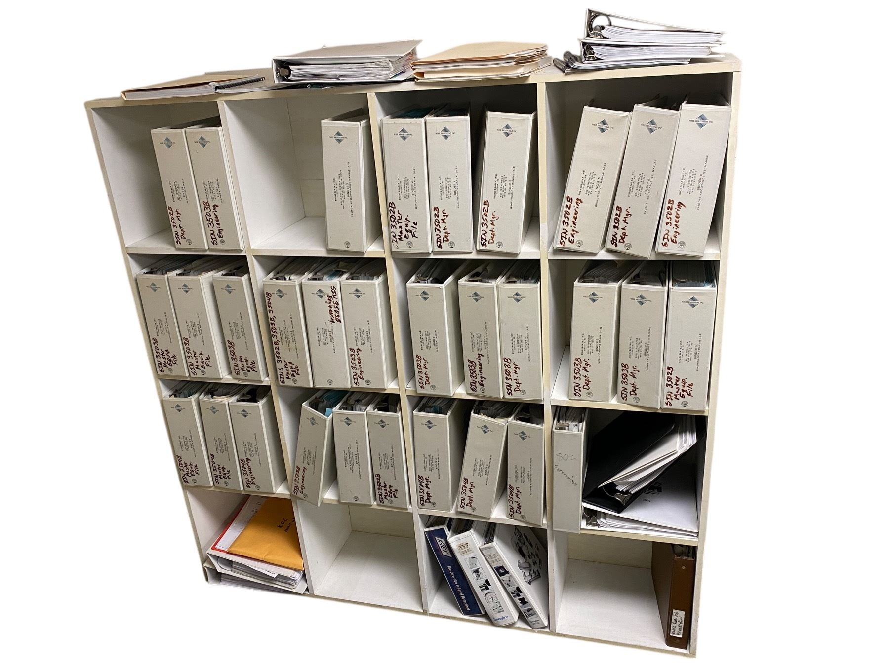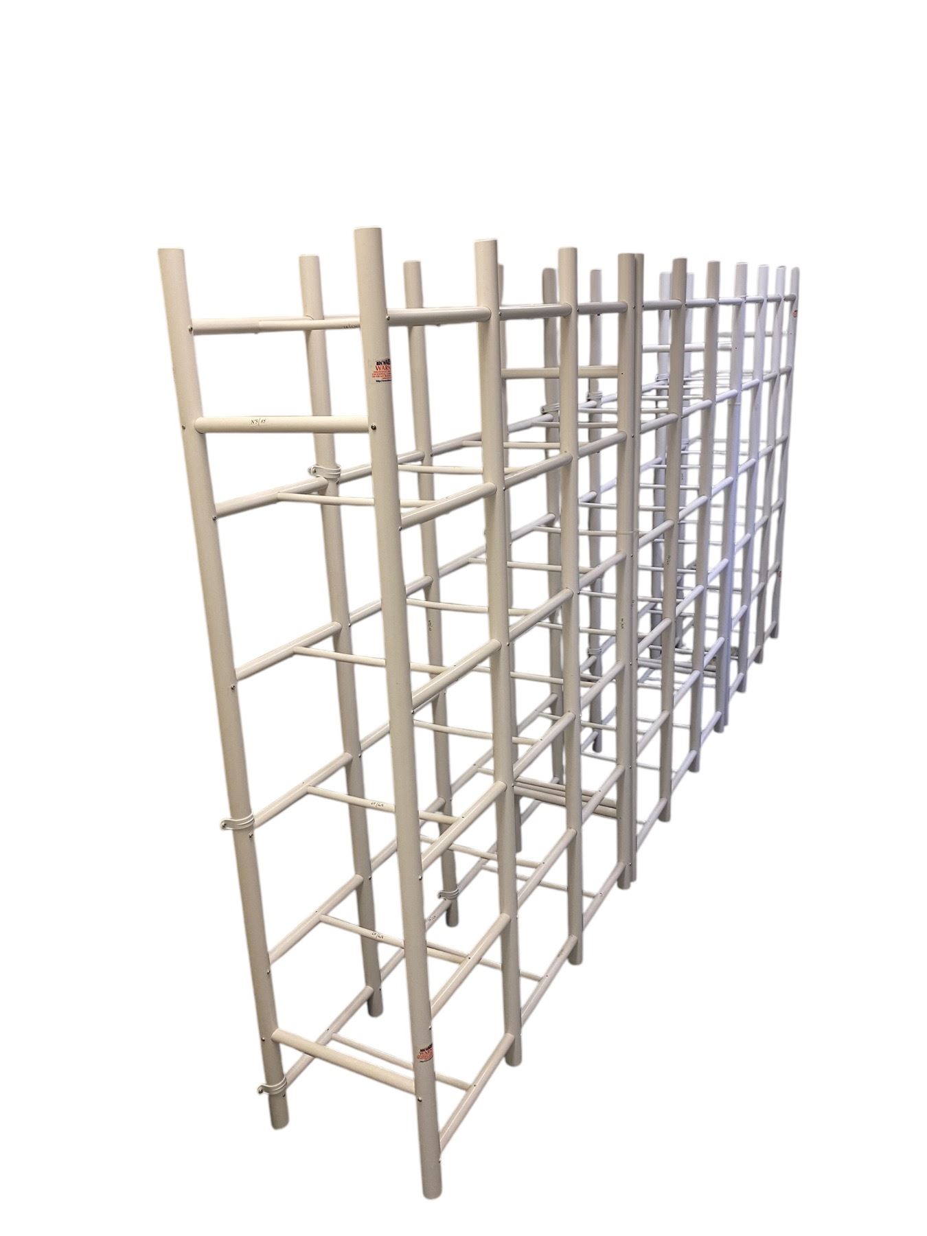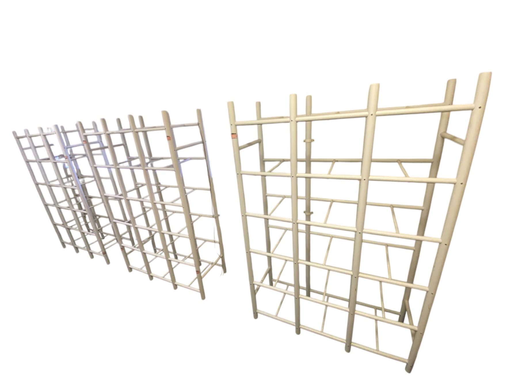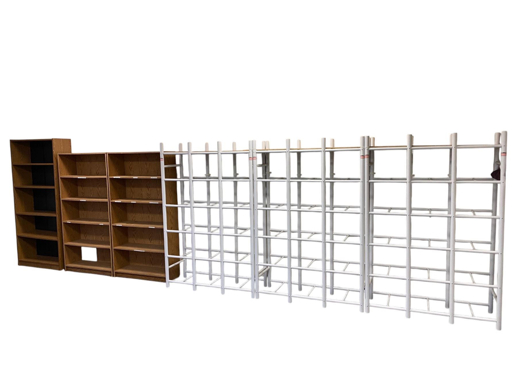 13 pc - x3 wood book cases & x10 white racks (68x45x17")