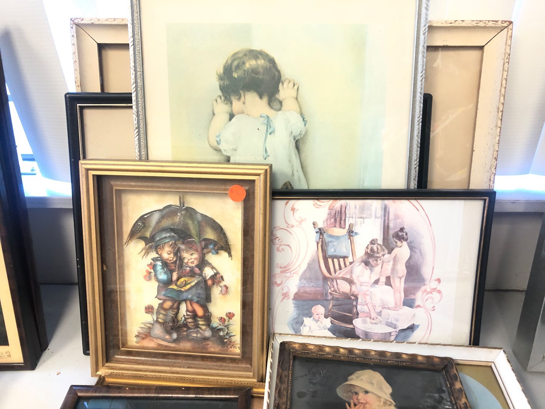13 vintage estate framed portraits - includes 1908's Baby Ivory bath (approx 11" X 9") / Beasie Pease Gutmann (approx 13" x 17") / Frances Tipton Hunter (approx 8" x 10 1/2") etc