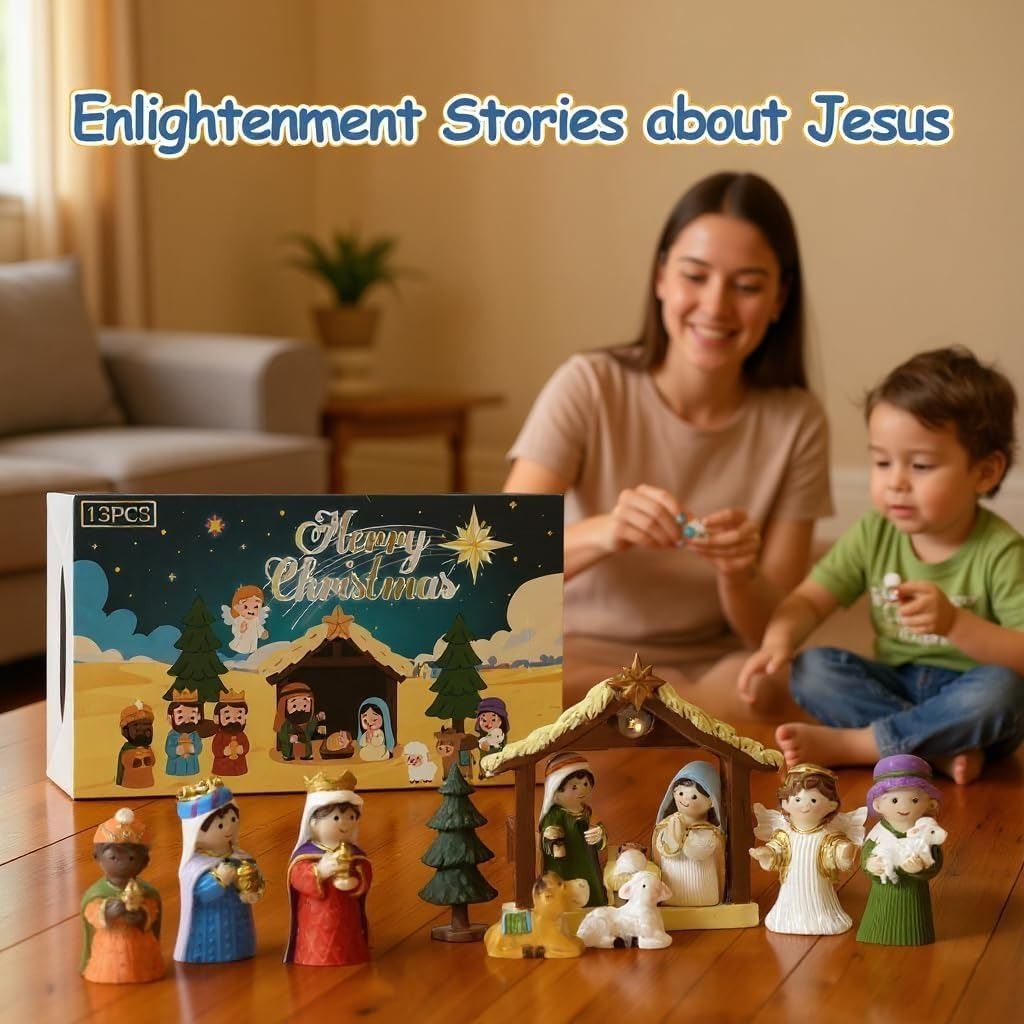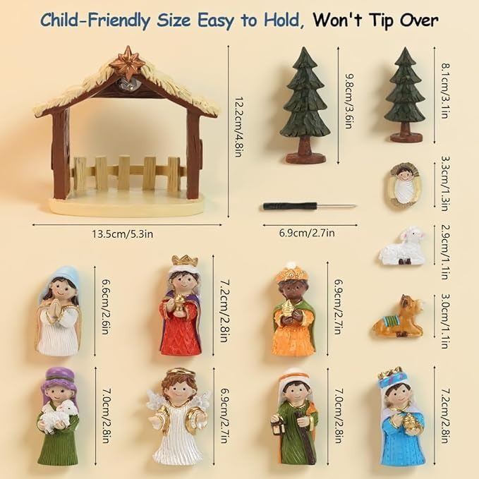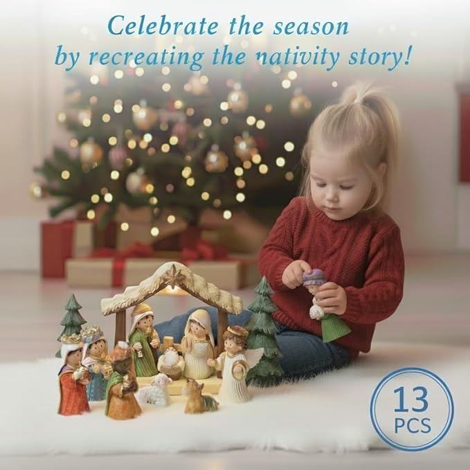 - Qulable Nativity Set for Kids - 13pcs Christmas Story Sets & Figures Nativity Scene for Toddlers with LED Lights, Tabletop Figurines Nativity Playset for Little Girls Boys Children Ages 4 5 6+