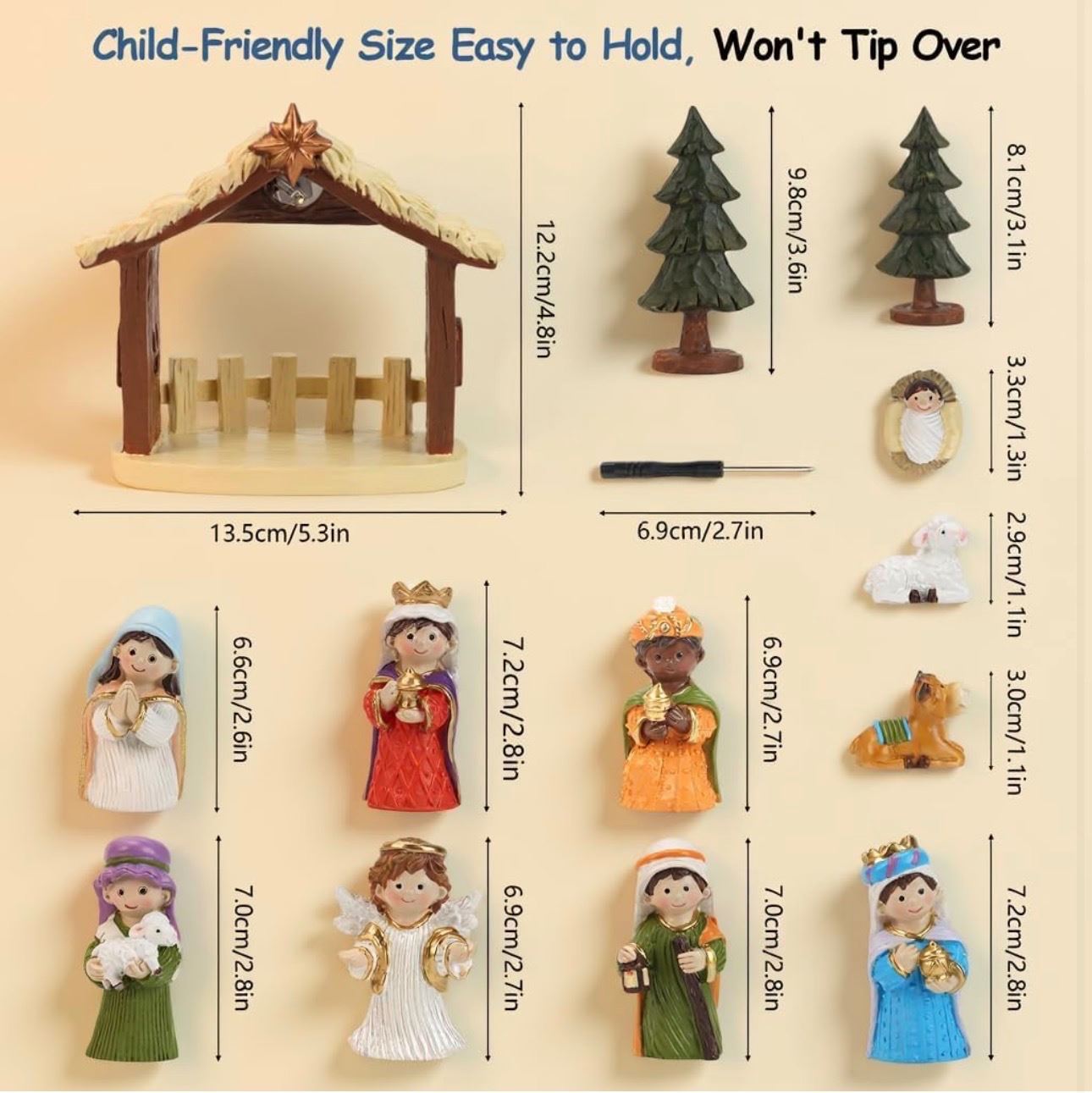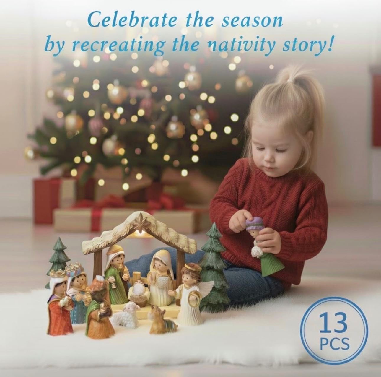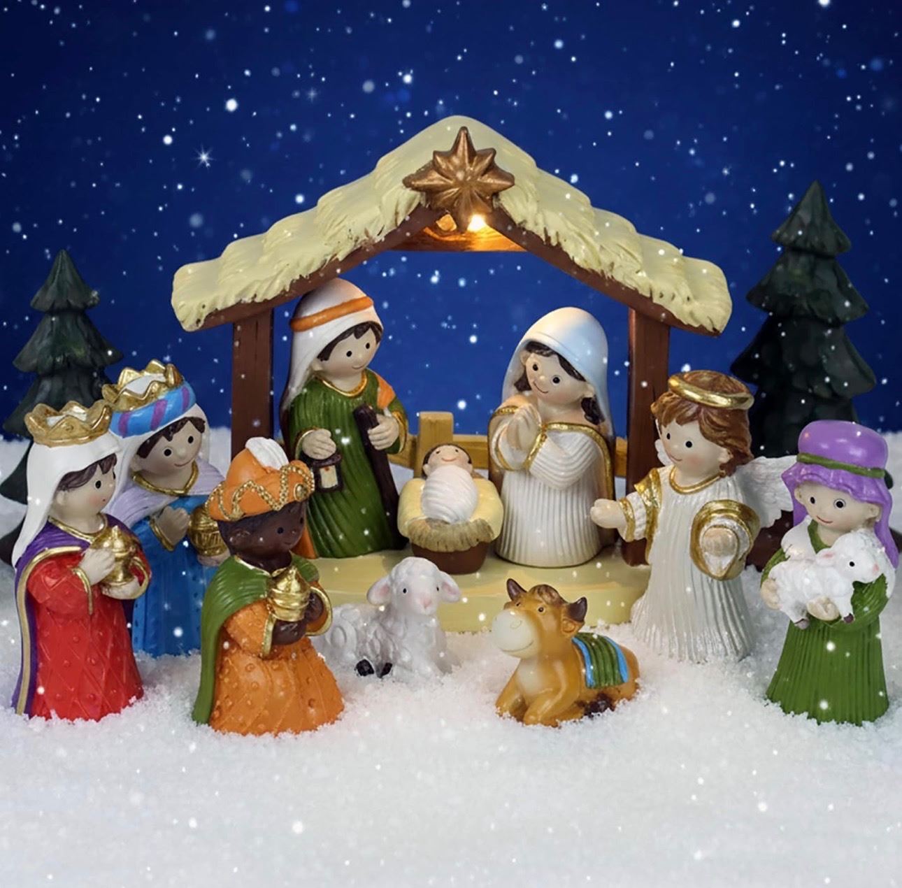13PC Nativity Set/Christmas Story Set with LED Light - Tabletop Nativity Figurine Set - New Sealed