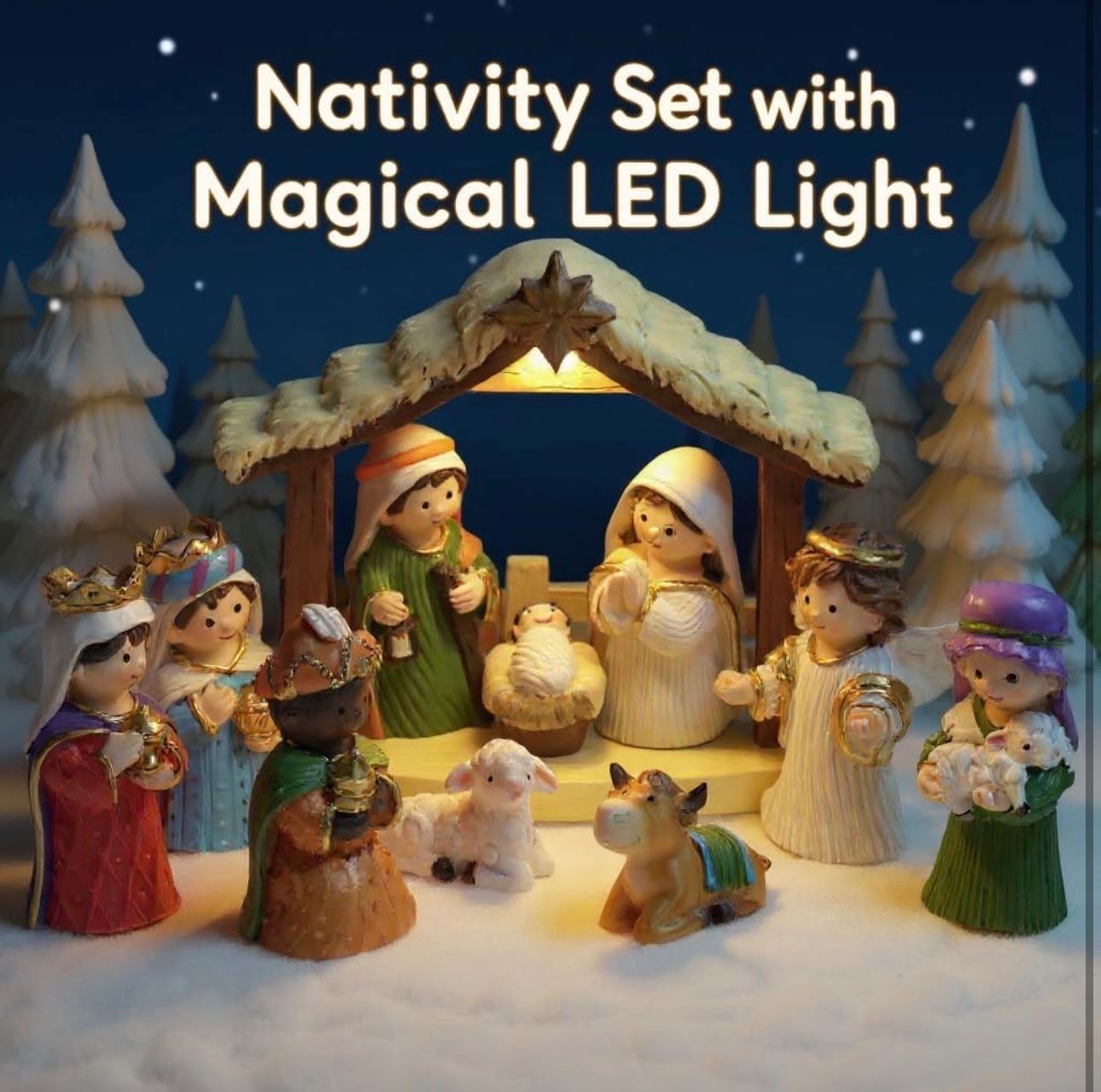 13PC Nativity Set/Christmas Story Set with LED Light - Tabletop Nativity Figurine Set - New Sealed