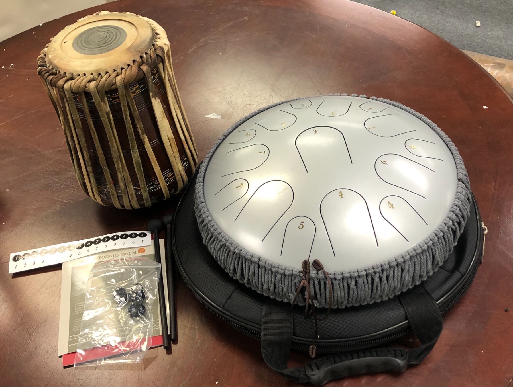 13in 15 note pearl paint steel tongue drum w/ bag & tabla (made in India)