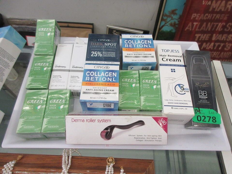 Dark spot corrector, hair removal cream, green clay sticks, anti-aging cream and more.