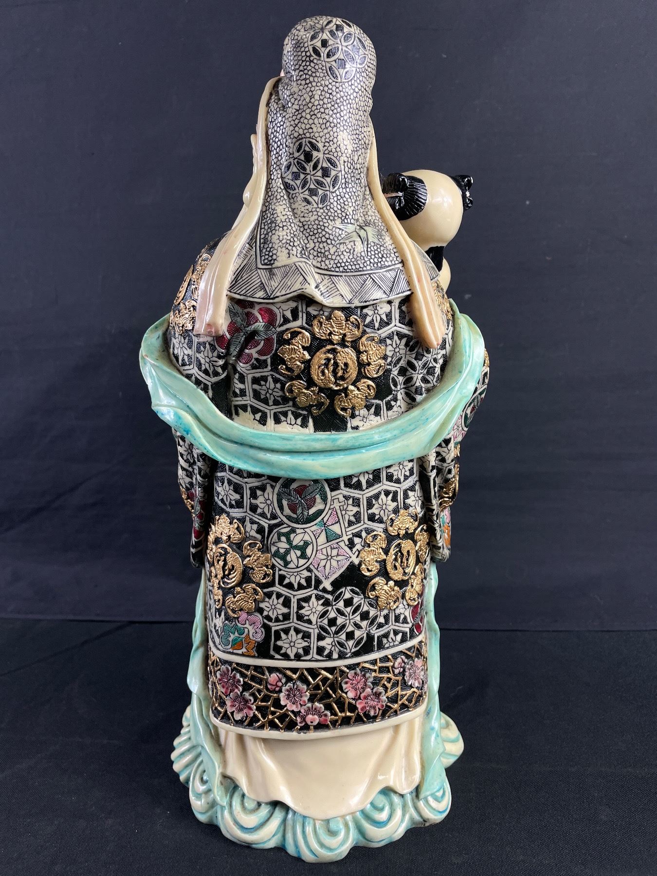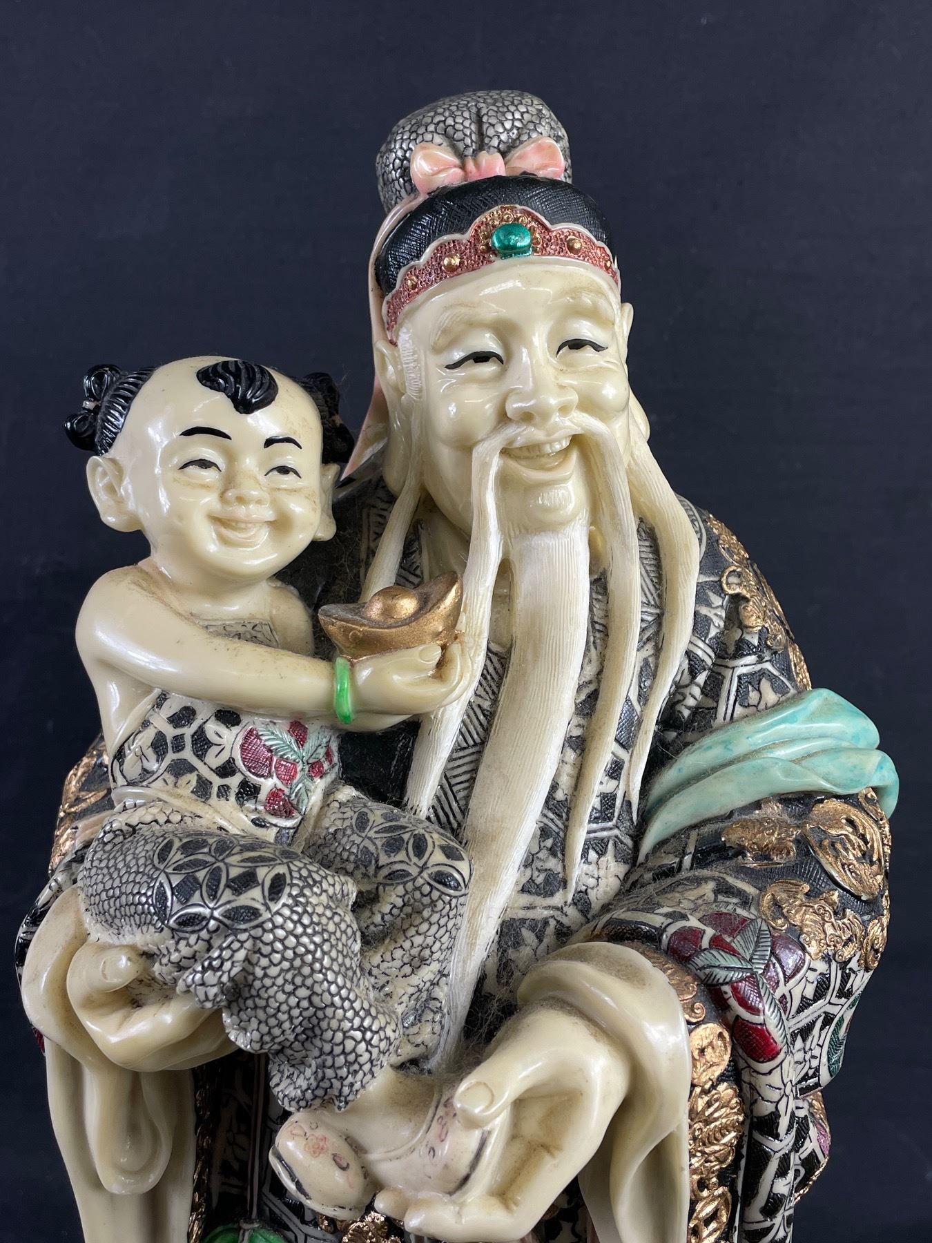 14" H Chinese God Figure and Child. Fertiltiy and Good Fortune. Asian Wise Men