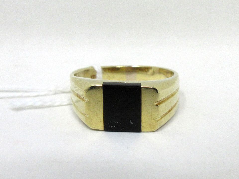 14 KT Gold and Black Onyx Ring - Size 12.5