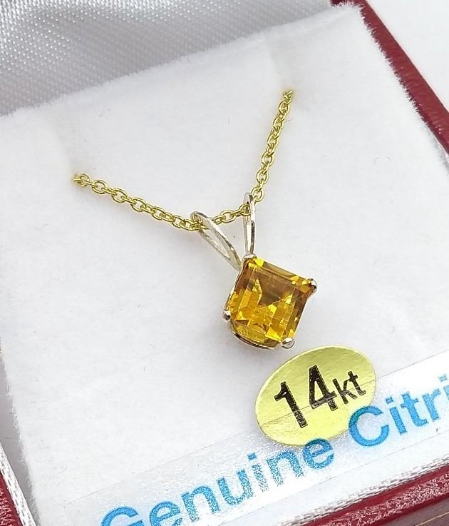 14 KT WHITE GOLD YELLOW CITRINE PENDANT W/ SILVER CHAIN W/ APPRAISAL $855
