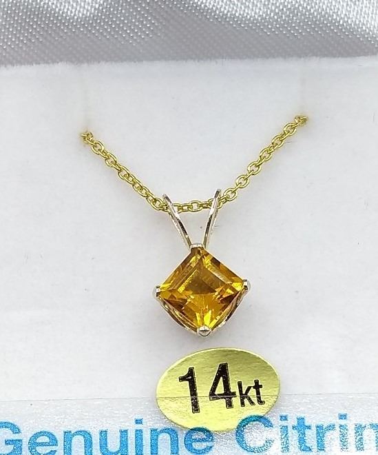 14 KT WHITE GOLD YELLOW CITRINE PENDANT W/ SILVER CHAIN W/ APPRAISAL $855