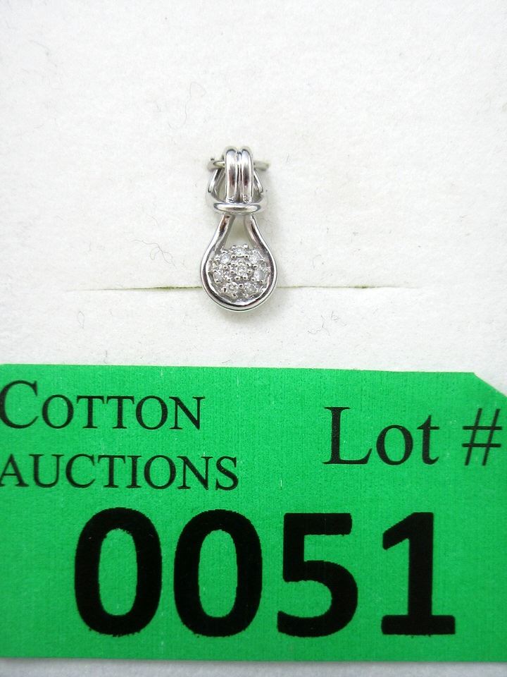 Delicate pendant with lark knot bale and a dome of 8 faceted diamonds (.05 CTW). Pendant measures 6.6 x 14 mm. Weight including diamonds: 0.8 grams.