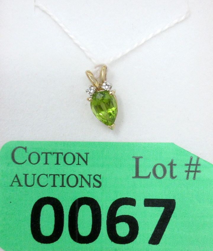 14 KT Yellow Gold Peridot and Topaz Pendant