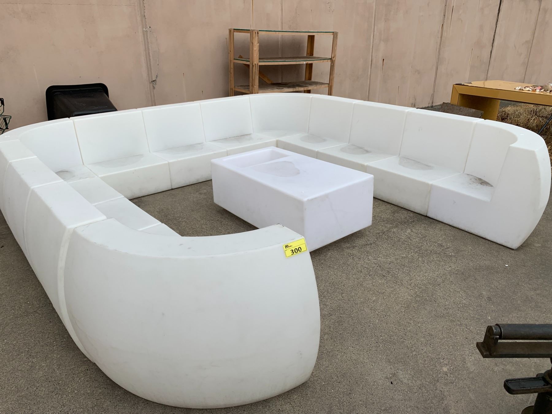 14-PC OUTDOOR LIGHT-UP PLASTIC SECTIONAL SOFA & OTTOMAN WITH BEVERAGE HOLDER