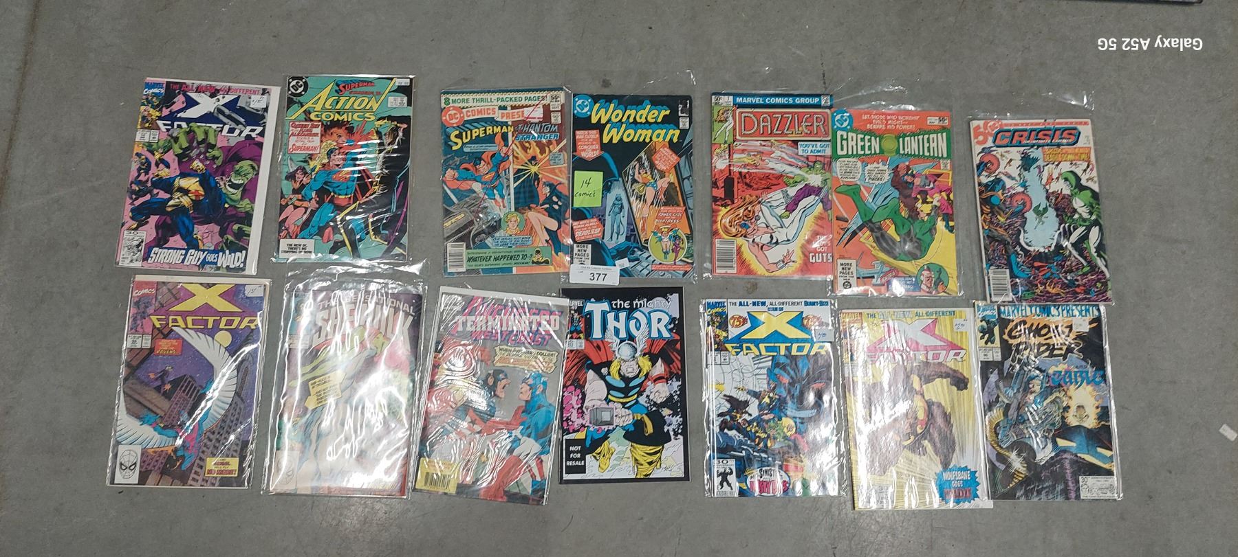 14 assorted comics, some vintage, The Flash, JLA, etc.