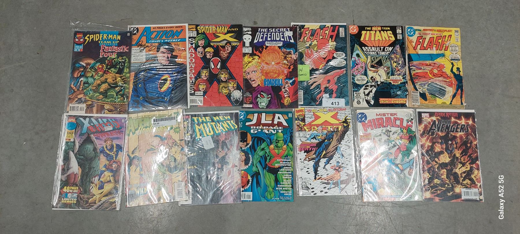 14 assorted comics, some vintage, The Flash, Superman, etc.