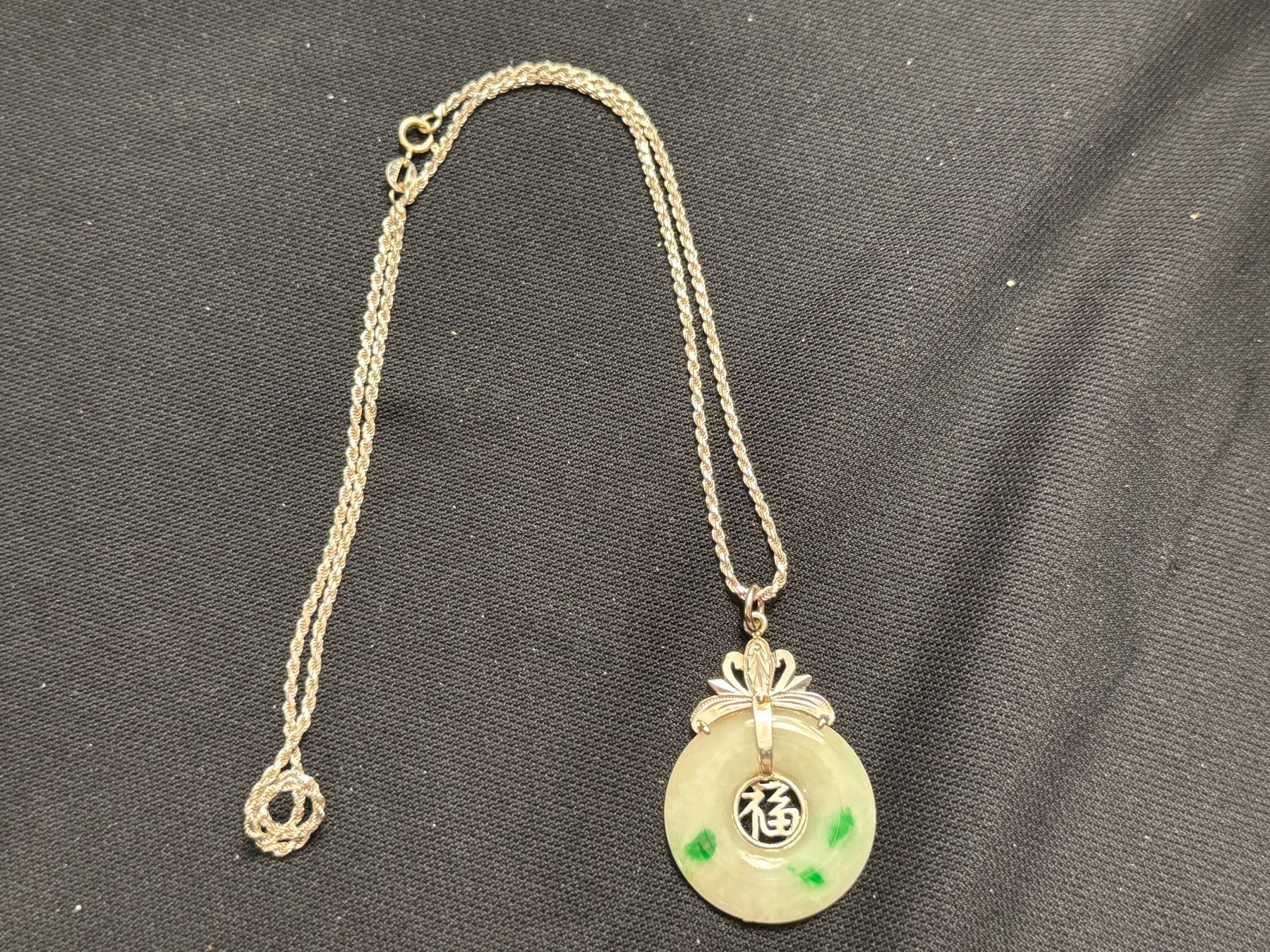 14K 17" CHAIN WITH JADEITE PENDANT 3.6GRAMS