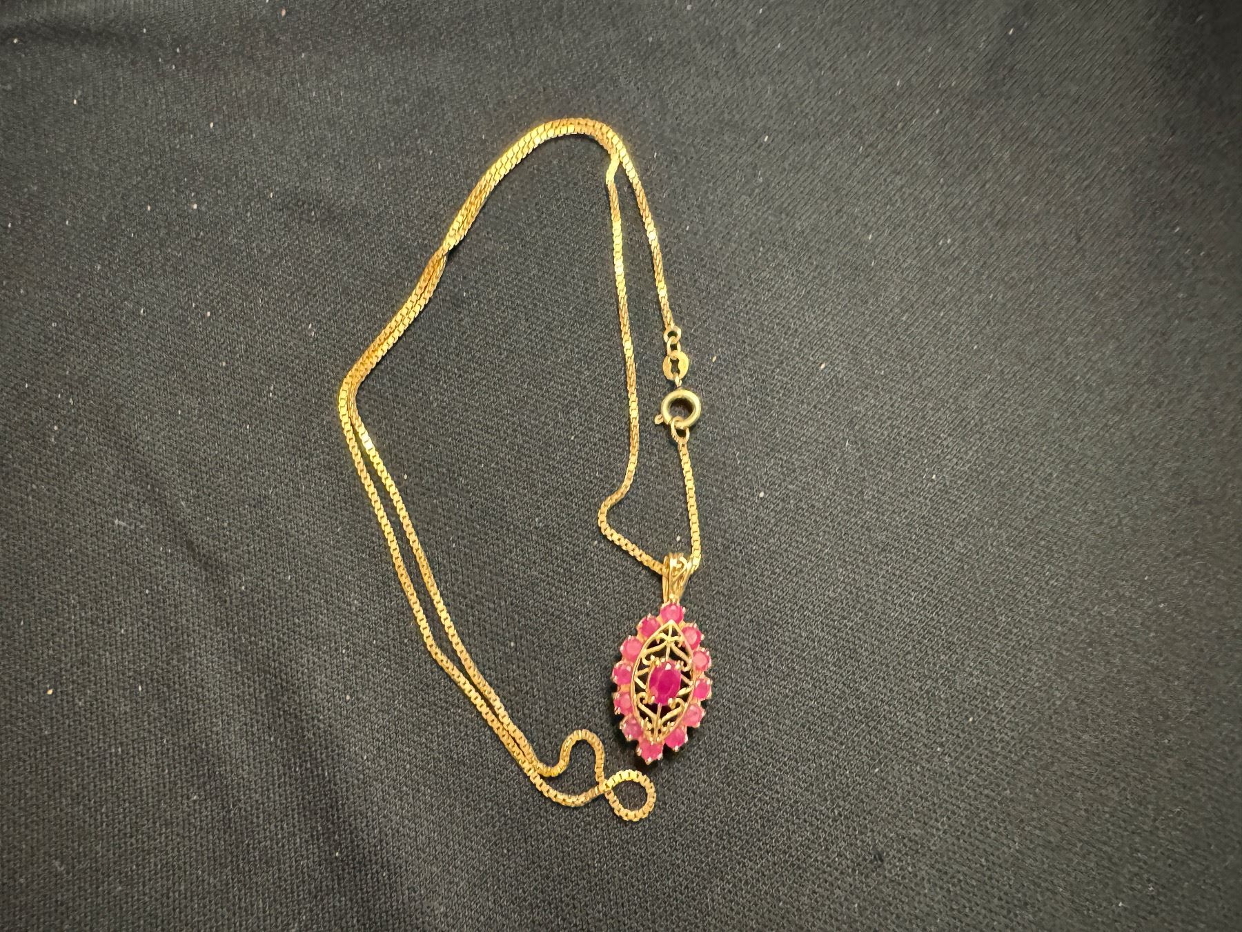 14K 18" CHAIN WITH 14K PENDANT WITH RUBIES 6.9GRAMS
