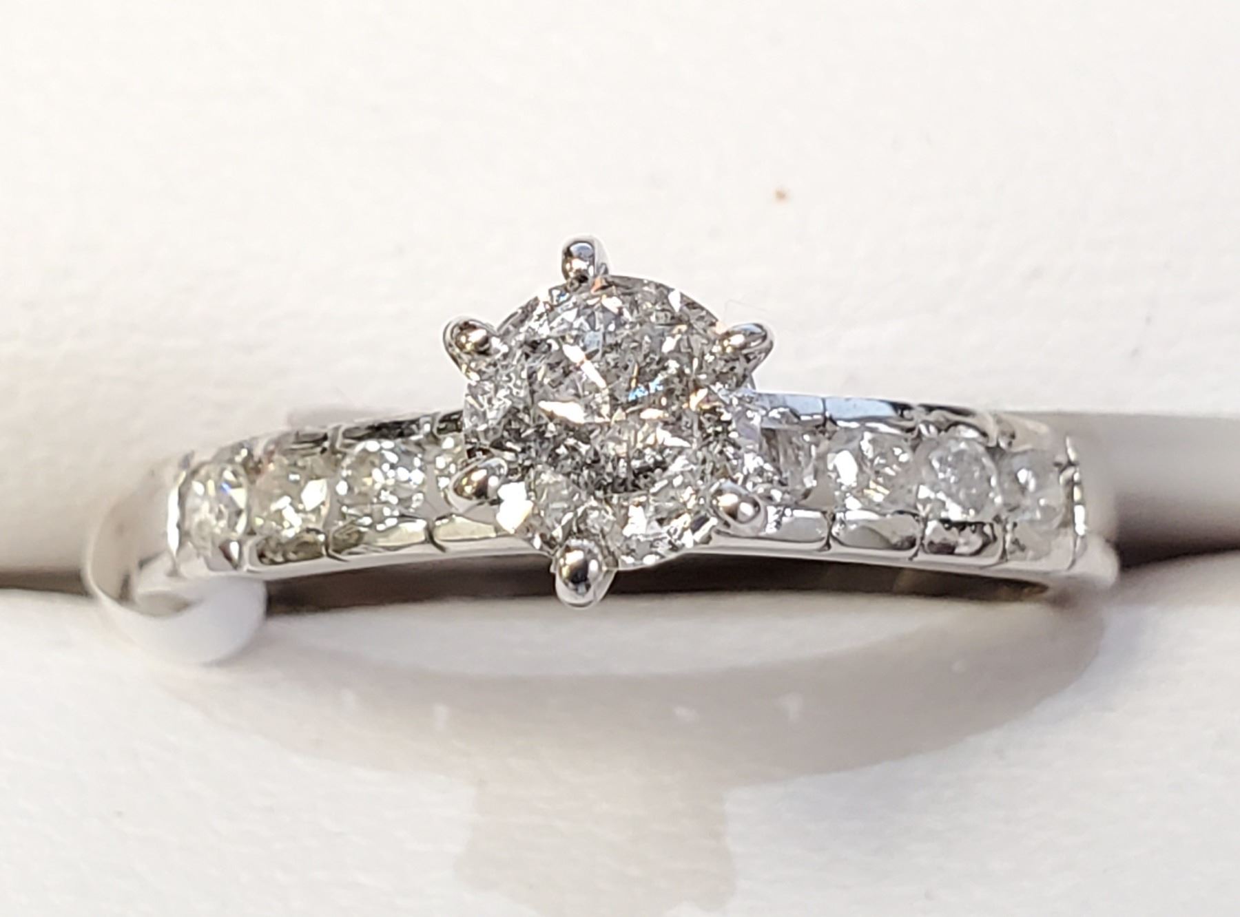 14K DIAMOND (0.6CT) W/ 8 SIDE STONES (0.3CT) RING SIZE 6