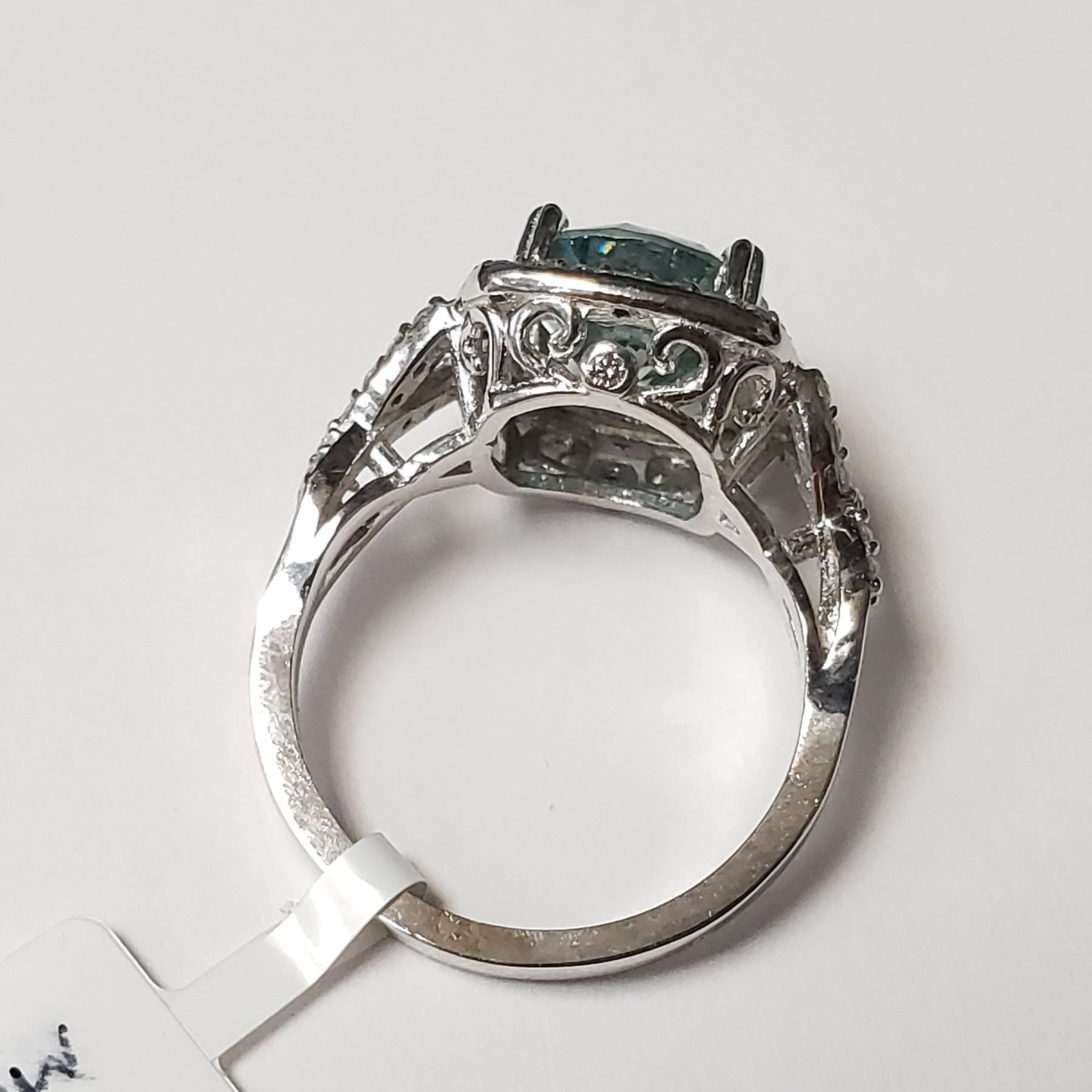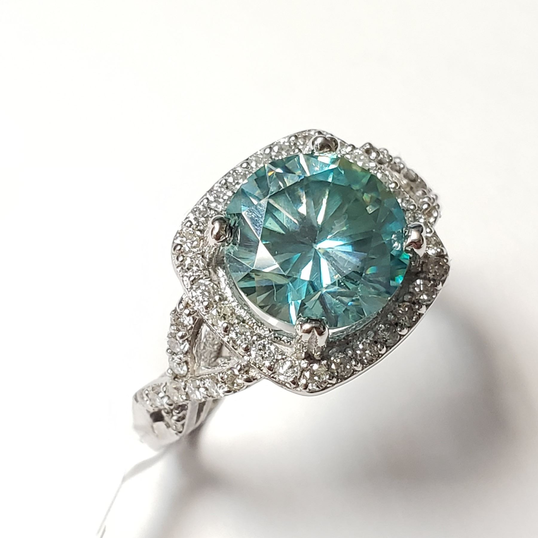 14K INTENSE SLIGHTLY GREENISH BLUE MOISSANITE(3.2CT) DIAMOND (0.45CT) RING SIZE 6.5