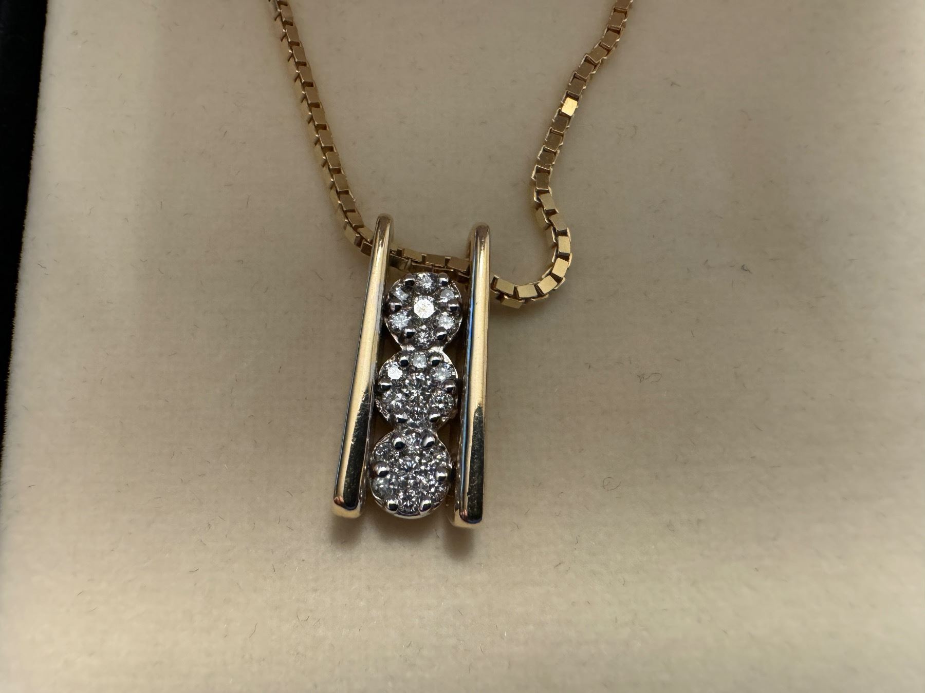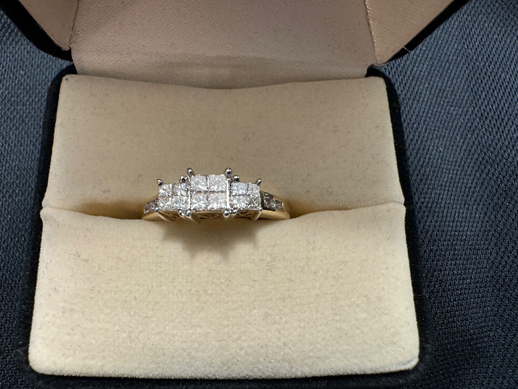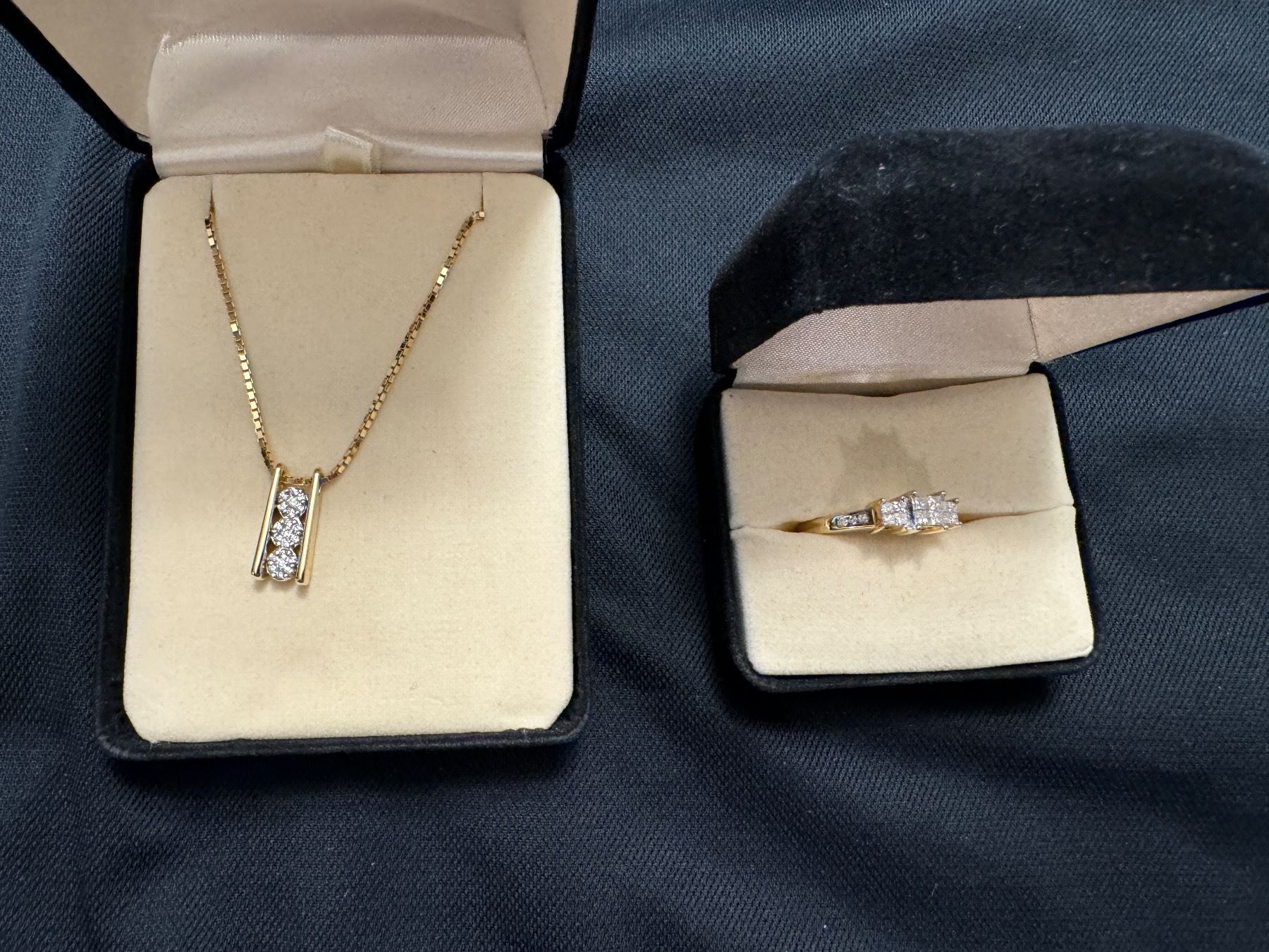14K LADIES RING WITH DIAMONDS AND GOLD COLORED NECKLACE WITH MOISSANITE