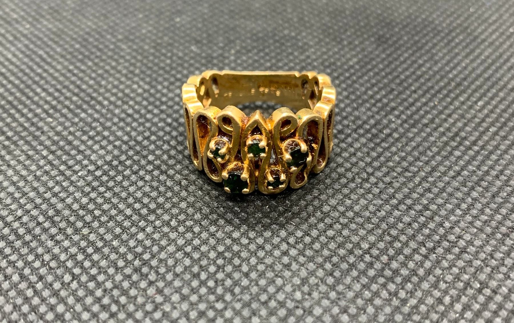 14K LADIES RING WITH GREEN STONES RV 595.00