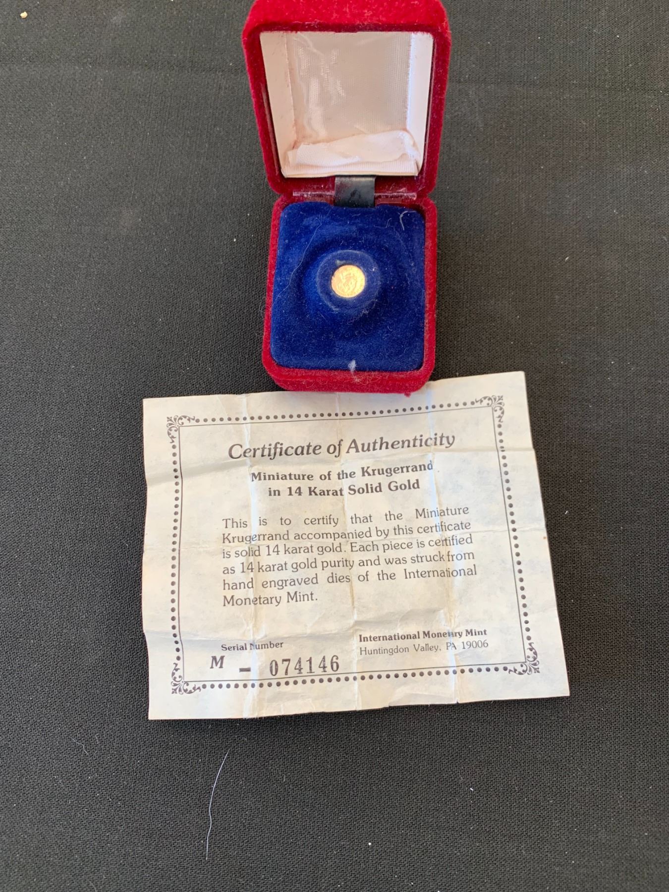 14K MINIATURE OF THE KRUGERRAND GOLD COIN